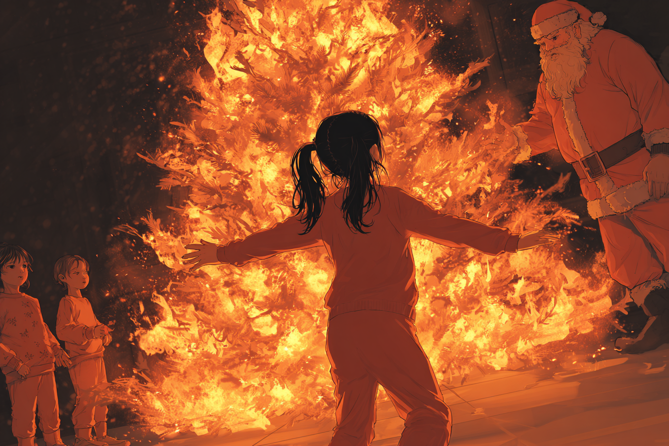 Движением энергии я смахнул пламя с ёлки, сбросил его куда-то далеко в космическое пространство. Только обгоревшие ветки дымились, да капала вниз расплавленная мишура. Кто-то из детишек заплакал, плач подхватили.
