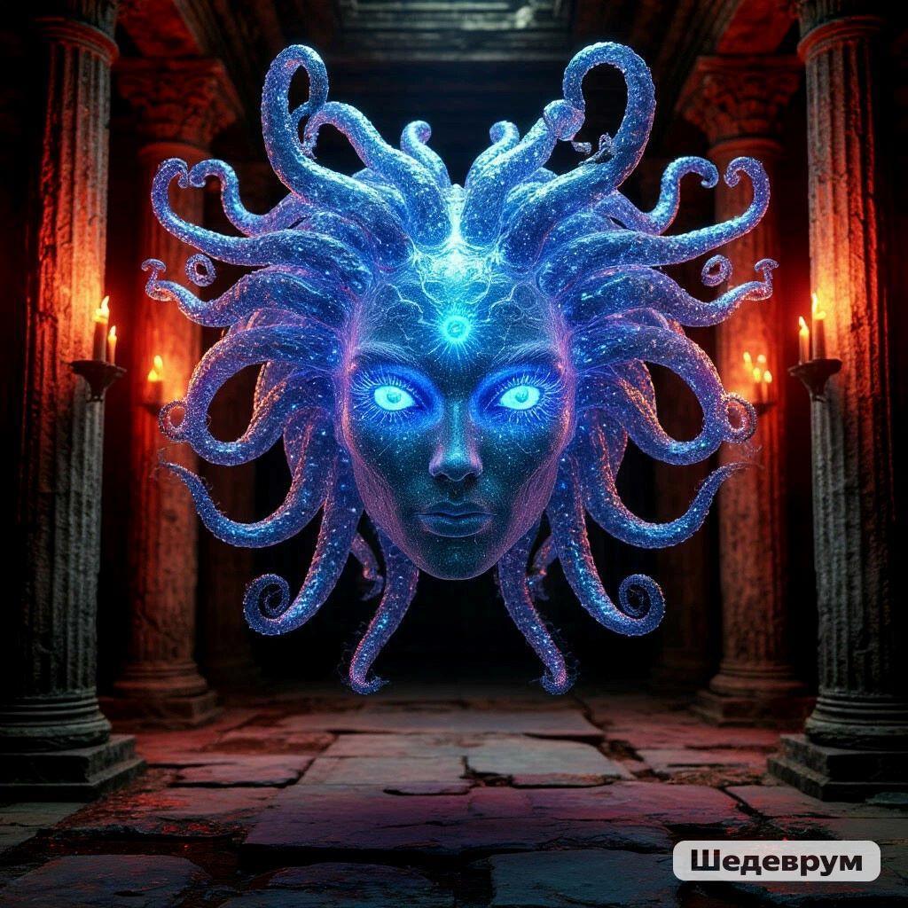 Но самым шокирующим оказалось для меня то, что я увидел в помещении, куда он меня затем привёл. Там прямо в воздухе висело какое-то полупрозрачное существо, похожее чем-то на морскую медузу. Оно было наполнено голубоватым искрящимся светом с десятками длинных щупалец, которые чуть колыхались под её головой, обладающее явно женскими чертами лица. Но главное, оно ждало, как я с ужасом понял, именно меня, и оно тут же, как я оказался там, тут же облепило меня этими своими щупальцами, а затем я почувствовал, как это проникло в меня. При этом больно совсем не было, просто по мне словно пробежал небольшой электрический разряд и угнездился где-то внутри моей головы и других органах тела. В это же самое мгновение весь мой страх, до этого сковавший меня, куда-то моментально испарился, а на душе стало так хорошо и спокойно, как никогда наверно не было во всей моей жизни. После чего прямо в голове неожиданно раздался нежный, как журчащий ручеёк, девичий щебечущий голосок: