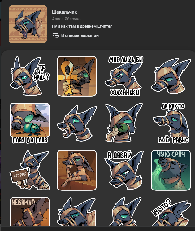 А вчера Анубис дернул меня еще раз. Зайти в каталог новинок стикер-паков. Три месяца назад я устоял перед новым драконом. Но когда увидел это…