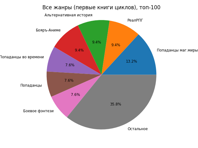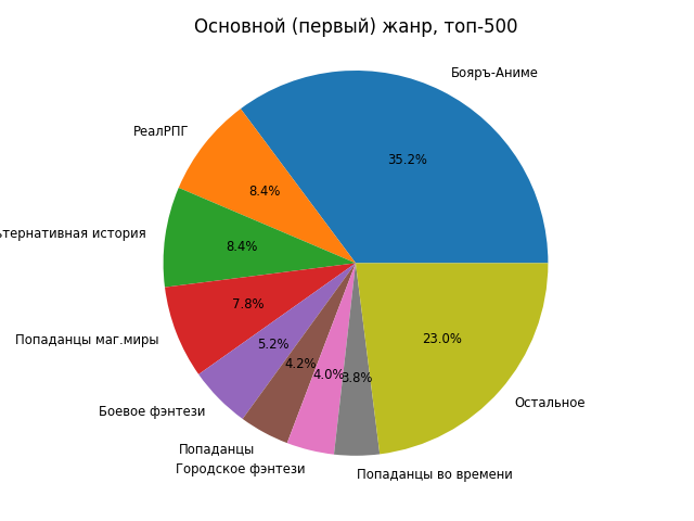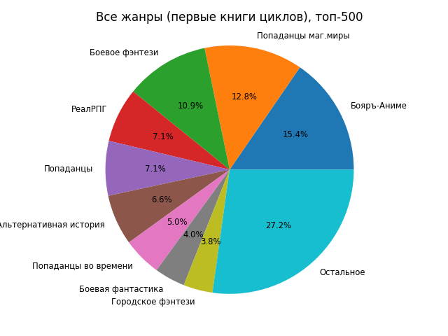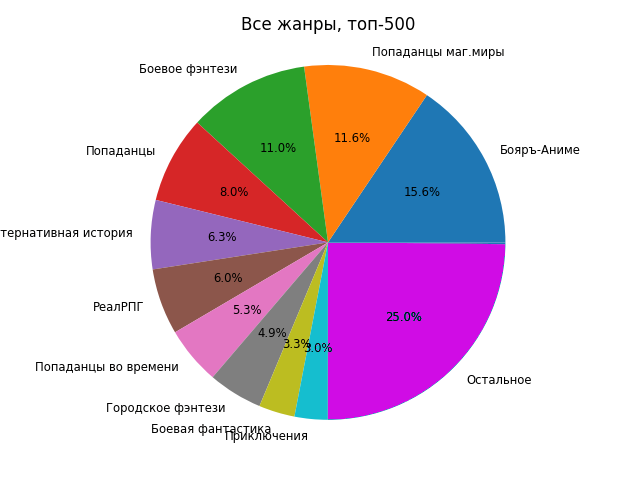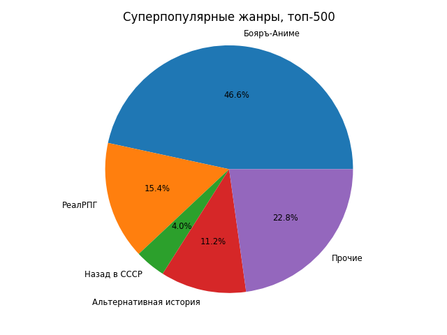 В топ-100 заметно просела боярка, в то время как реалРПГ в последнее время заметно прибавила. Не знаю, надолго ли у нас этот тренд, но если раньше бояръ-аниме было на недосягаемой высоте, то теперь разрыв между жанрами непреодолимым не кажется. Впрочем, авторам боярки переживать пока рано, в топ-500 почти половина книг имеют одним из жанров бояръ-аниме.