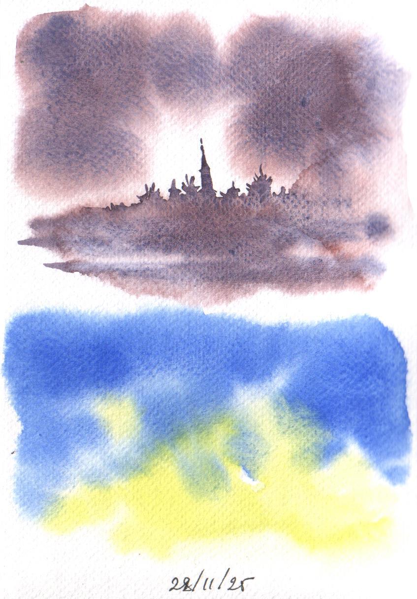 Единственное, на что вчера меня хватило, это проверить, как бумага разносит краску по воде. Всё-таки, 70% хлопка должны влиять. И получается , имхо, прикольно. Лучше, чем на Веронезе-25.