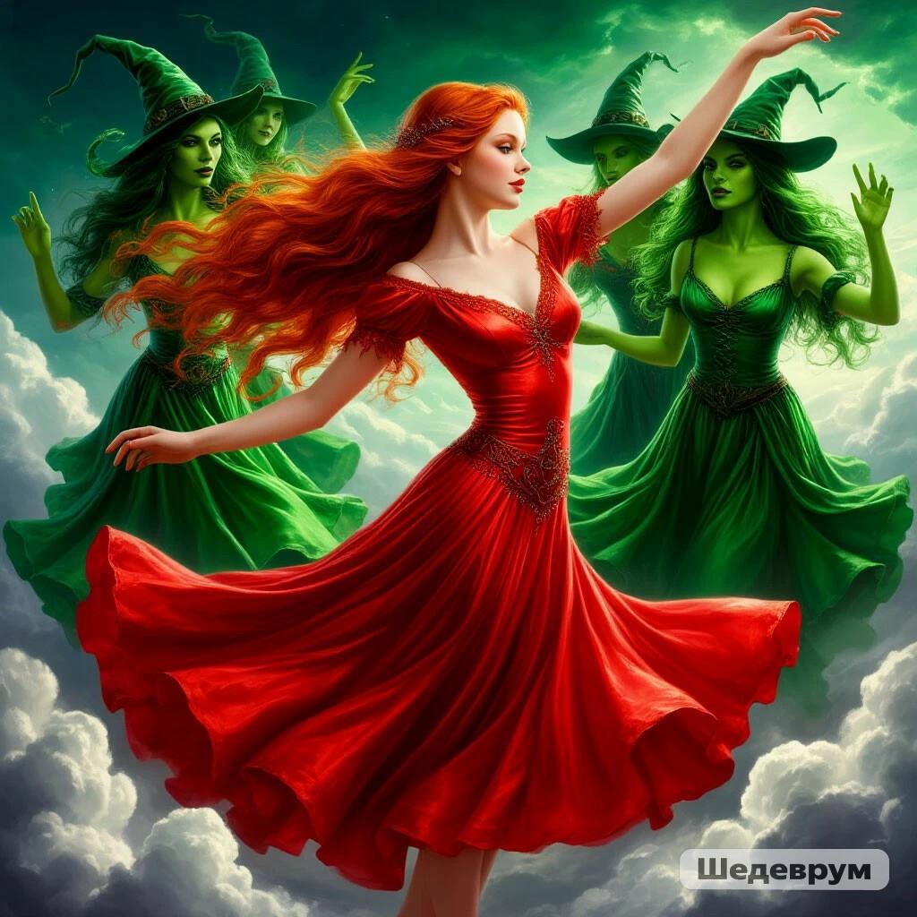 Молодая рыжая ведьма АнгЕлика любит веселиться вместе с зелёными ведьмами, которые считаются не самой подходящей компанией для юной леди 🧙♀🧙♀🧙♀