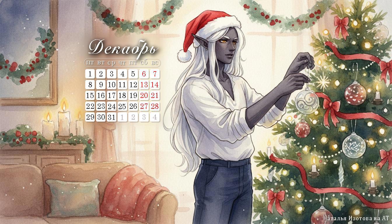 Календарь на декабрь с атмосферой Нового года