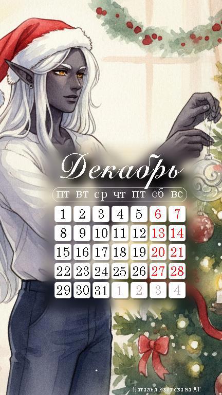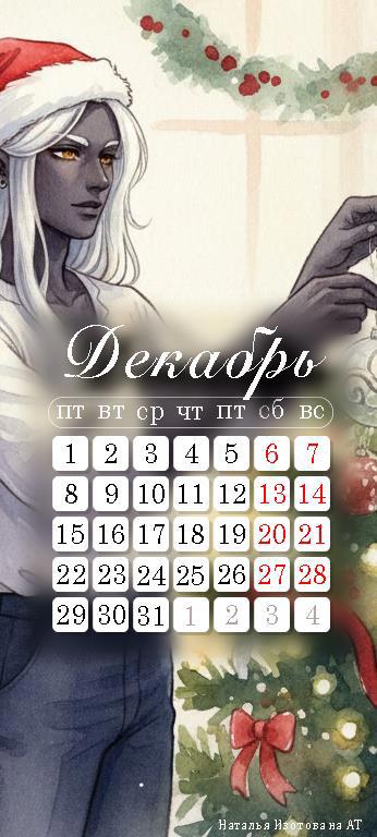 А сегодня у меня календарь с К’Туном из небольшого бонуса к циклу «Магия и код» под названием «От нашего мира — вашему!». Про празднование Нового года в кругу семьи и про то, как этот совершенно человеческий и современный праздник попал в мир технофэнтези.