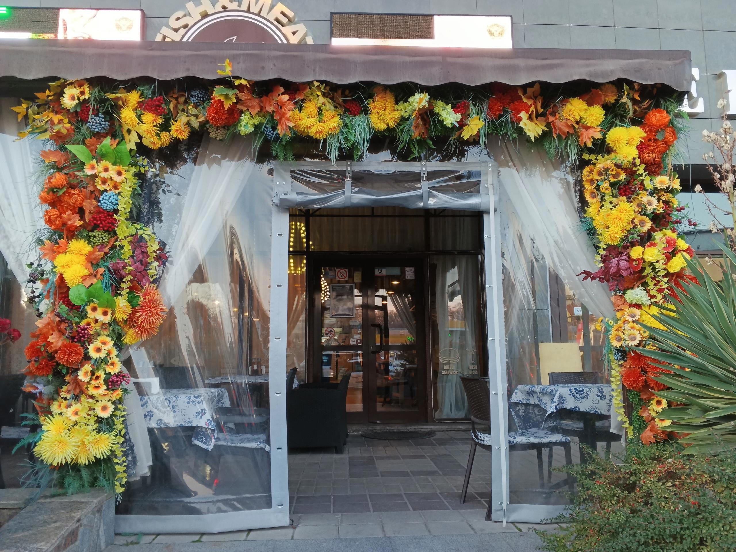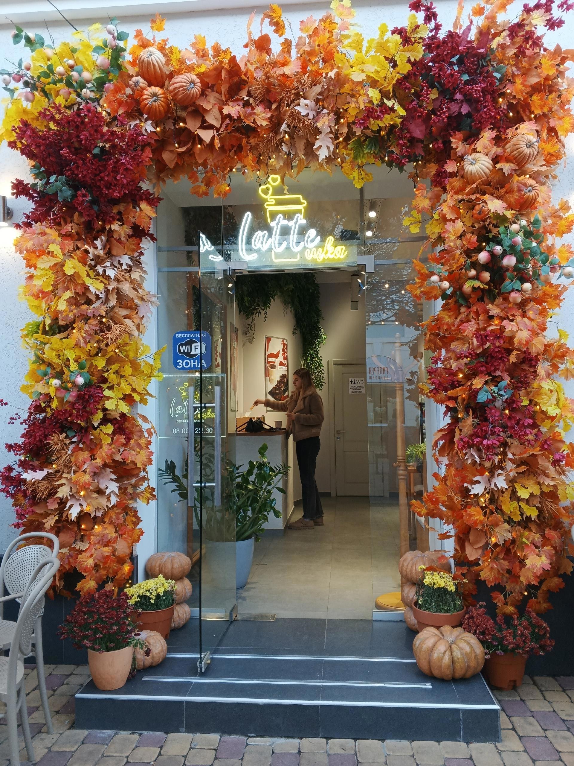 Кафе, золото листьев и тыквы. Фото Галины Малышевой.