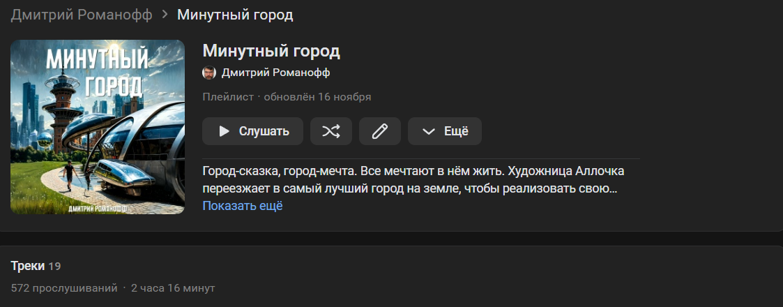 Автор: Дмитрий РоманоффДрузья, не секрет что двинуть нестандартную и креативную литературу очень сложно. На продвижение книги "Минутный город" было потрачено огромное количество усилий в ВК и тут. А результат очень слабенький. Множество людей обещали оставить отзыв или написать рецензию и пропадали... Может быть, они становились счастливыми после прочтения и им было уже не до книги? Гм, возможно... Очень рад за них, если честно!