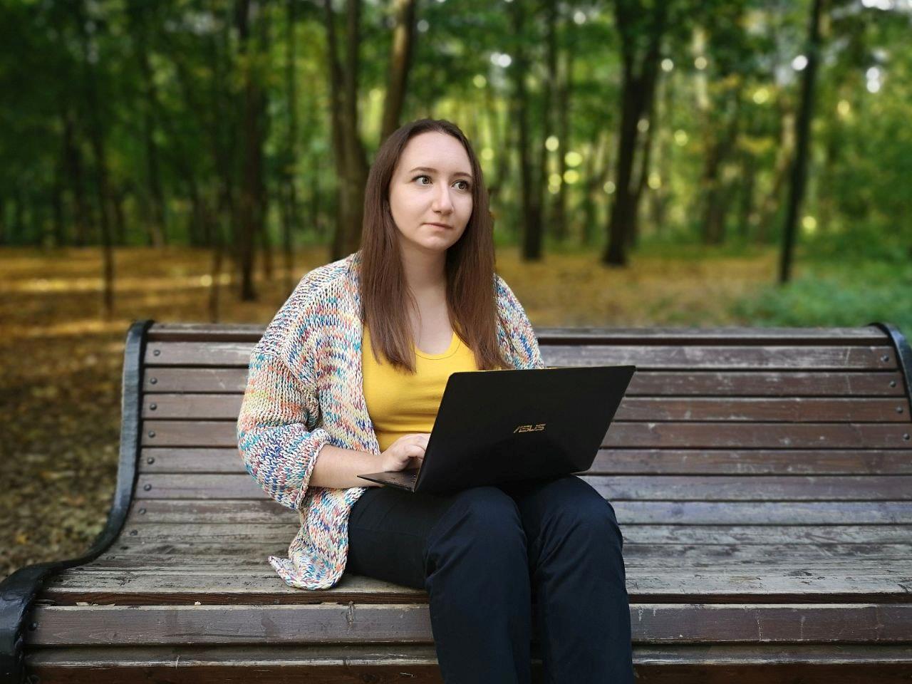 Не сказать, что я имею постоянное рабочее место. Книги и рассказы писала в самых разных условиях - поездах, самолётах, дома в тишине, в парке на скамейке (даже вот фото нашла из Нескучного сада в сентябре) И даже дома это может быть и диван, и рабочий стол, и кровать, и подоконник...