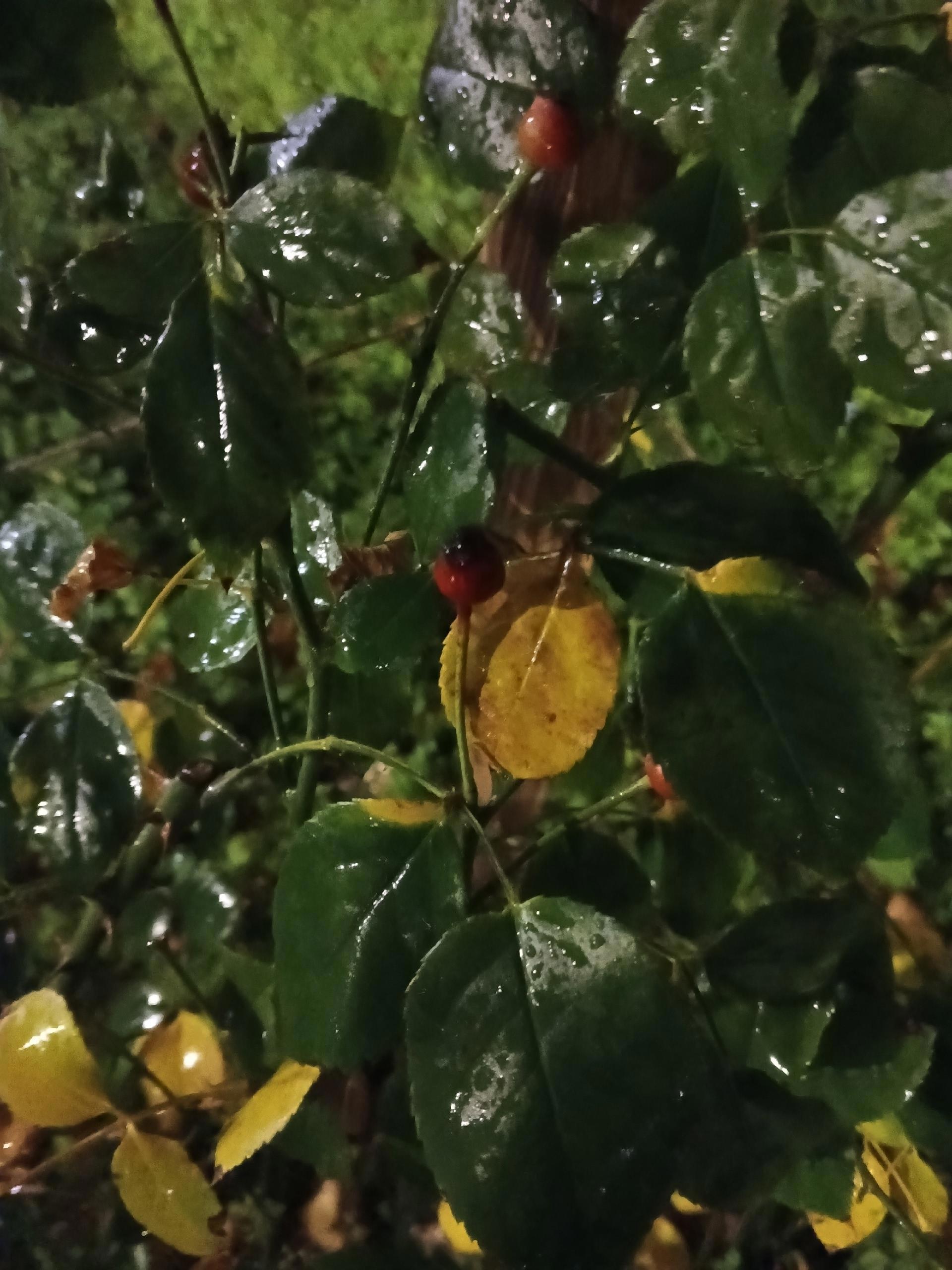 А сегодня, как и говорилось, Осень прощалась с нами закрыла всё туманом и заморосила дождём. Вечером мы вышли на улицу и окунулись в ночную Осень. Посмотрите, как она красива в прозрачных каплях на цветах, листьях и голых ветвях деревьев. Дождь также прекрасен, как и любое время года.