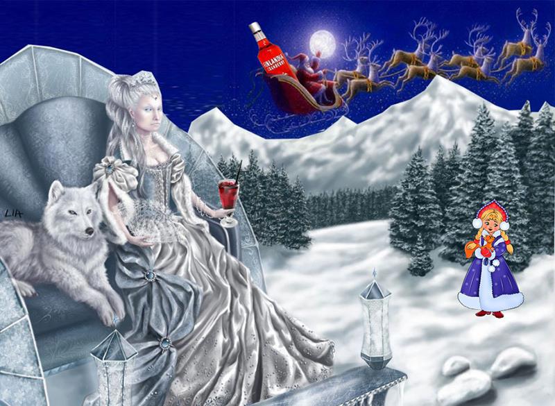 Он пробыл у нее во дворце сутки, а через девять месяцев, у неё родилась дочь, и когда Люсии исполнилось шестнадцать земных лет, снова как снег на голову на площадь перед дворцом свалился Йоулупукки, и дочь улетела со своим отцом, и теперь, каждый Новый год, летает с ним из Лапландии на юг. Снежная королева еще раз посмотрела на тающий в черном звездном небе белый след, и ледяная слезинка упала в бокал клюквы, настоянной на спирту.