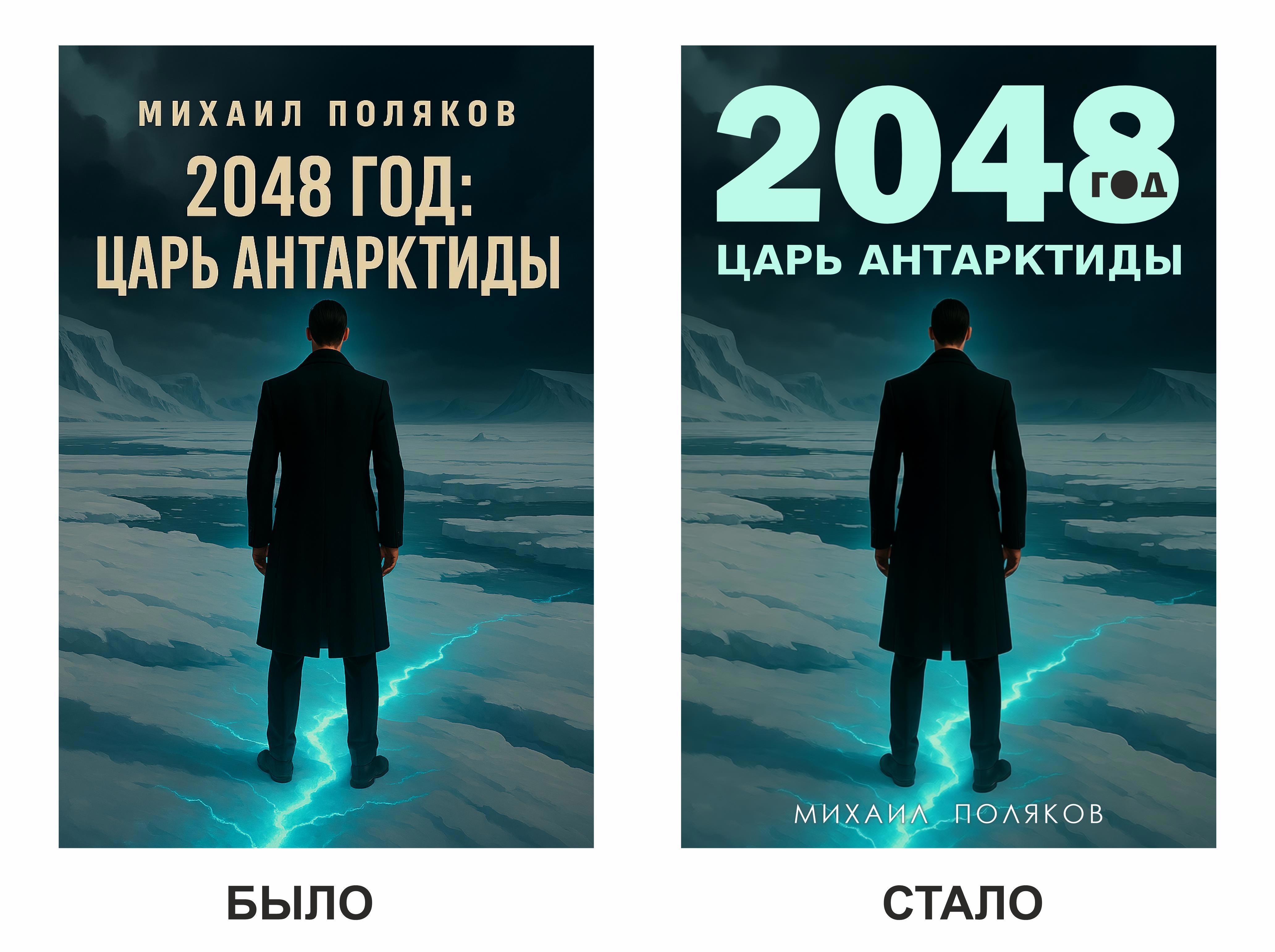 Пример краткого названия — «1984» Джорджа Оруэлла, правда, это если цифрами, а так оно словами пишется, как я понял. Четыре символа — это практически идеально. Вот и со своей книгой «2048 год: Царь Антарктиды» я решил провести работу по улучшению обложки.