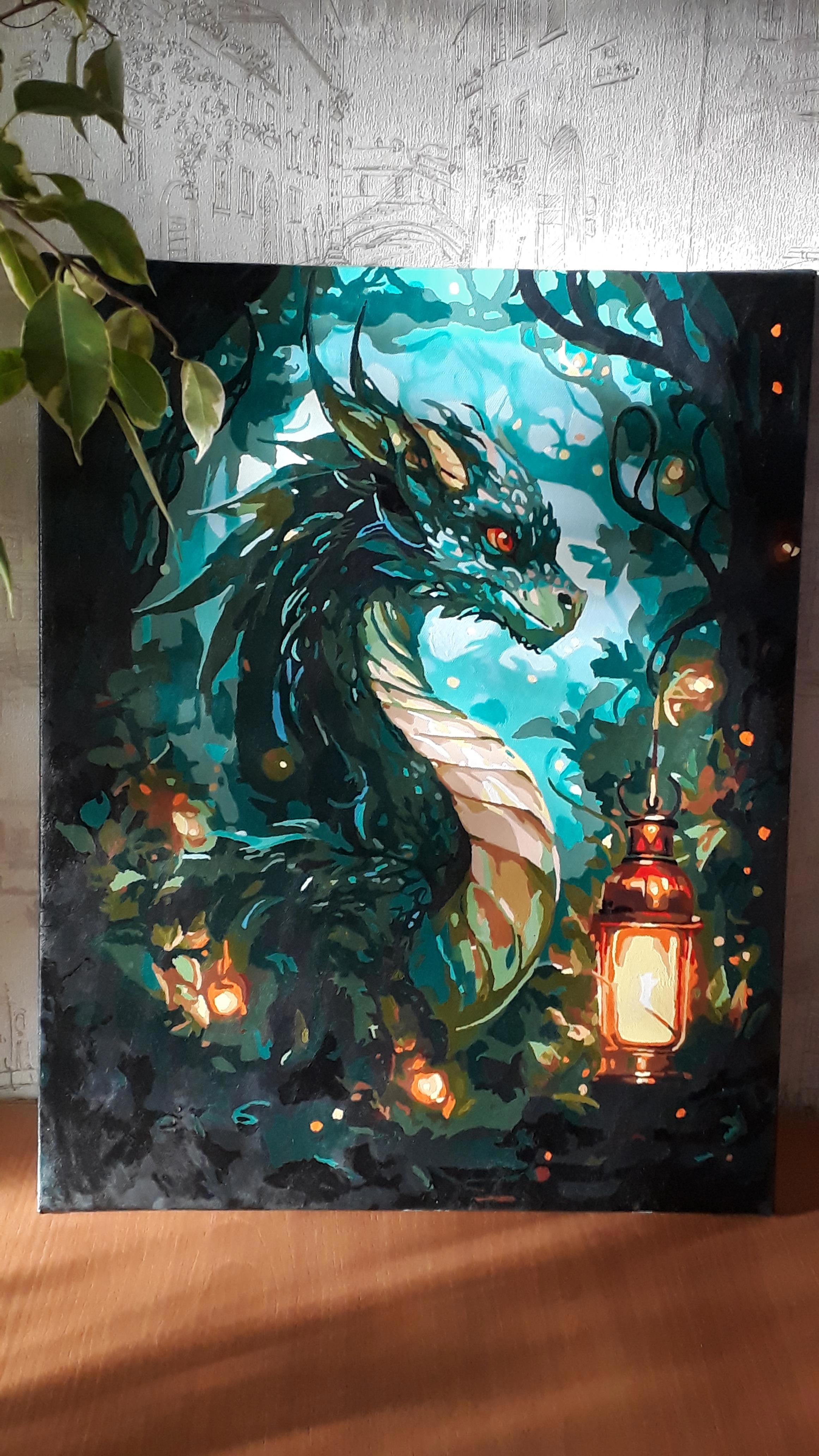 4. В конце ноября в моей рабочей зоне завёлся вот такой дракон) Появился вместе с лесом и фонарём и решил, что он остаётся) Ну что уж, ладно, друг, живи)) Не зря же месяц раскрашивала)