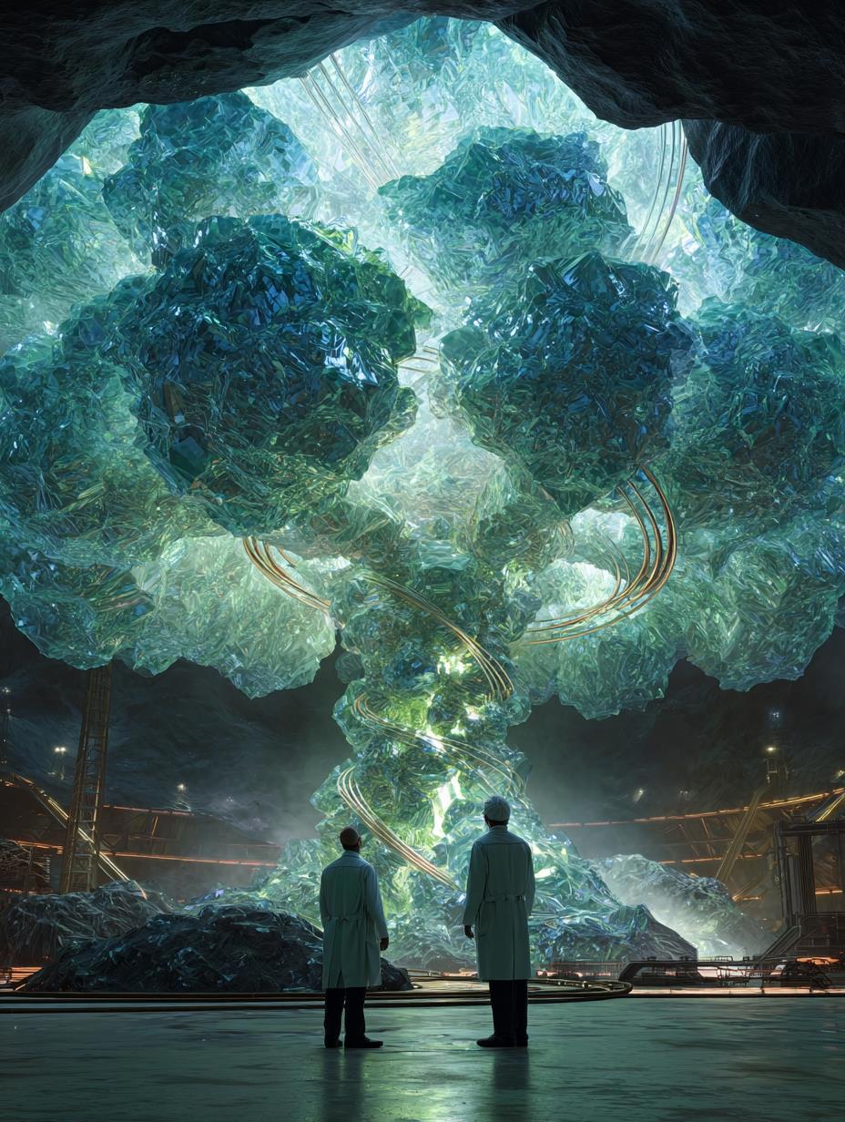 Две спирали серого металла оплетали ствол и ветви реактора, а в небольших промежутках между ними можно было различить внутреннюю структуру. Сеть микротрубок с водой утопала в прозрачном слое сверкающих кристаллов. Свет на тысячах граней дрожал, распадаясь на зелёные и синие блики, но ни один из этих лучей не мог проникнуть в темноту чёрного алмаза внутри. Низкий рокот исходил из сердцевины. Джек был уверен, что именно эту вибрацию он почувствовал ранее.