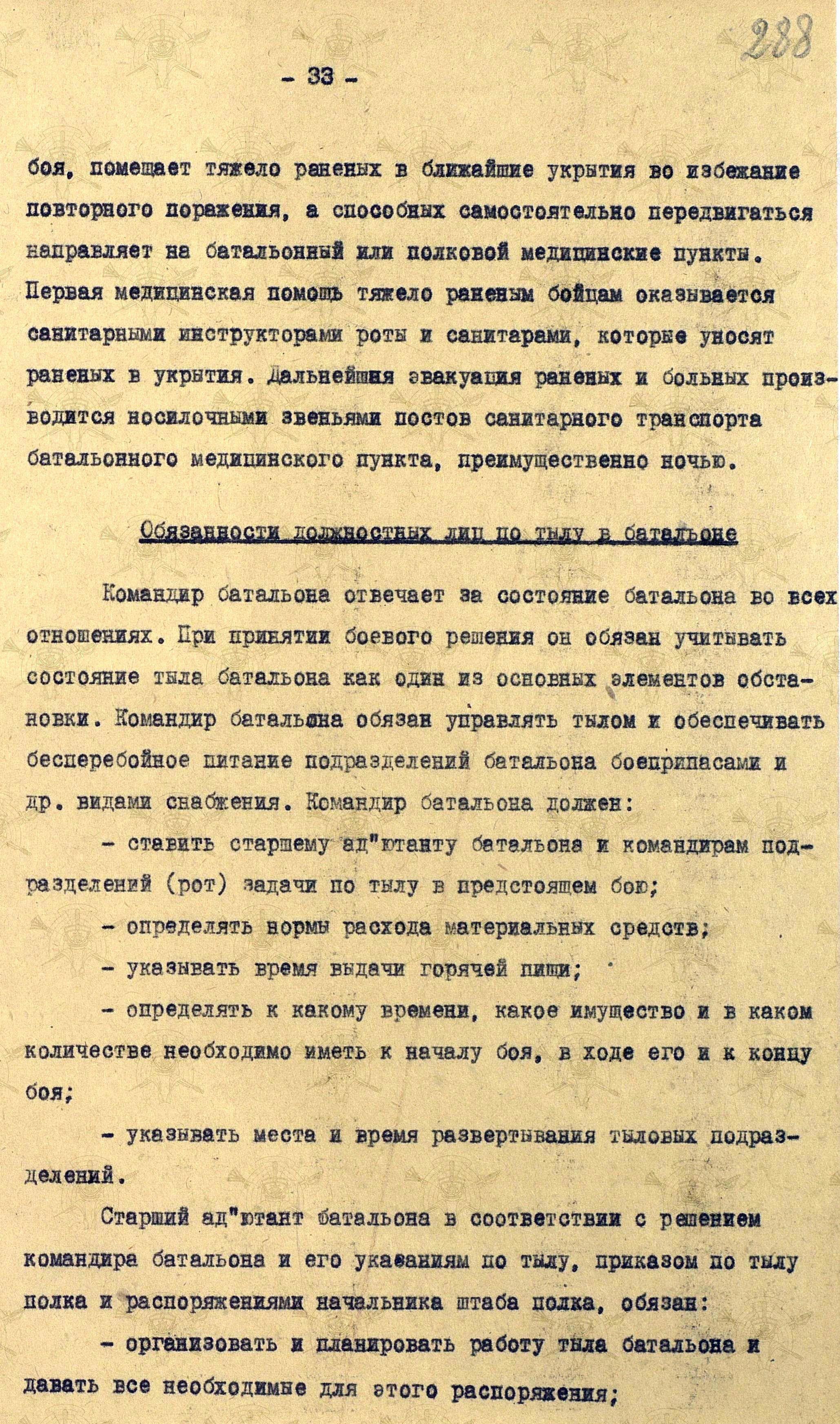 Батальонный тыл. Состав, задачи, подразделения, документы. Тыл батальона в бою