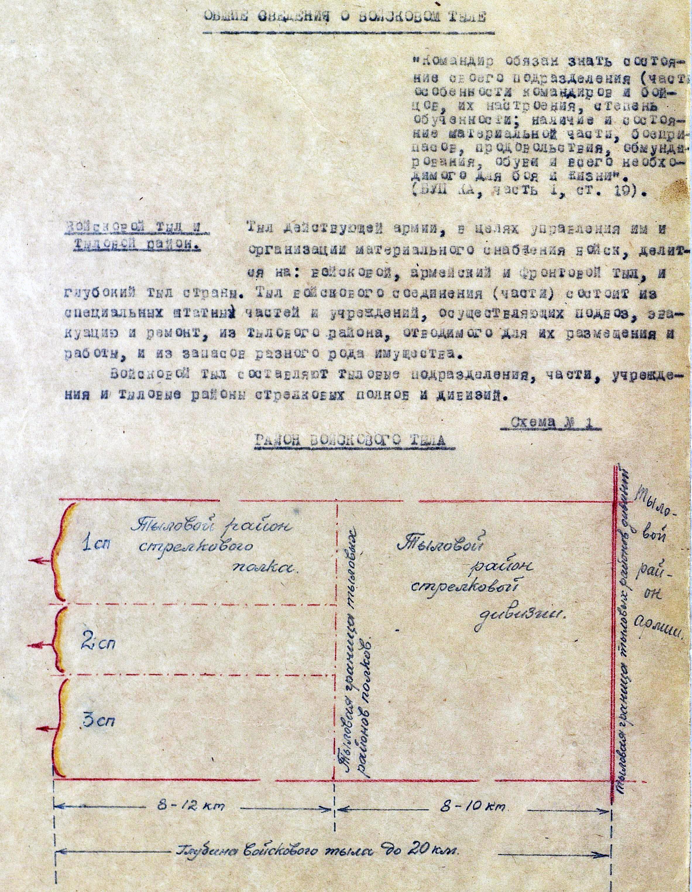 Как вы понимаете, эти листы выложены не просто так. Из текста можно почерпнуть представление о том, что из себя представляет тыл действующей армии, тыловые районы, узнать о задачах, выполняемых войсковым тылом. Подробнее эти вопросы мы ещё обсудим, но в другой публикации, когда речь пойдёт о других направления деятельности снабженцев, в том числе, и о запасах материальных средств.