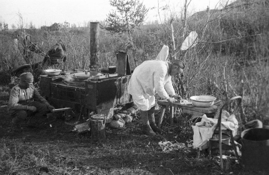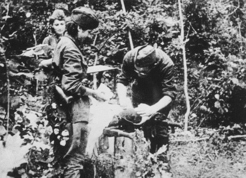 Оказание помощи раненому советскому бойцу на пункте первой помощи 13-й армии, 1941 г.