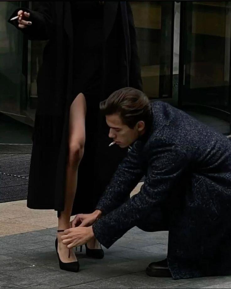 Он любил меня не только страстно, но и красиво. Ему нравилось, что я красива и умна, мы много раз были в местах, где я выступала по работе и это всегда юбки, платья, каблуки... Он любил помогать мне, поправлять ремешки на туфлях, поправлять бретельки платья во время съёмок, всячески показывал, что принадлежу ему... и мне это тоже очень нравилось...Он очень ласковый и нежный был со мной, заботливый и шутил, что он носильщик моих сумок:). Отчасти это было так, у меня всегда было много сумок разных, для работы и съёмок, он всегда всё носил и выглядели мы сильно по-разному, я при параде, будто с обложки журнала, а он , как парень из деревни, но так оно и есть, он живёт в деревне. Как-то мы пошли в магазин, он попросил, чтоб я ему помогла выбрать одежду, помогла, он потом только ее и носил со мной, через время снова обновили ему гардероб и снова носил со мной только эту одежду. Ему нравилось, как он выглядит в одежде, которую я ему подбираю и мы так смотрелись более гармонично.