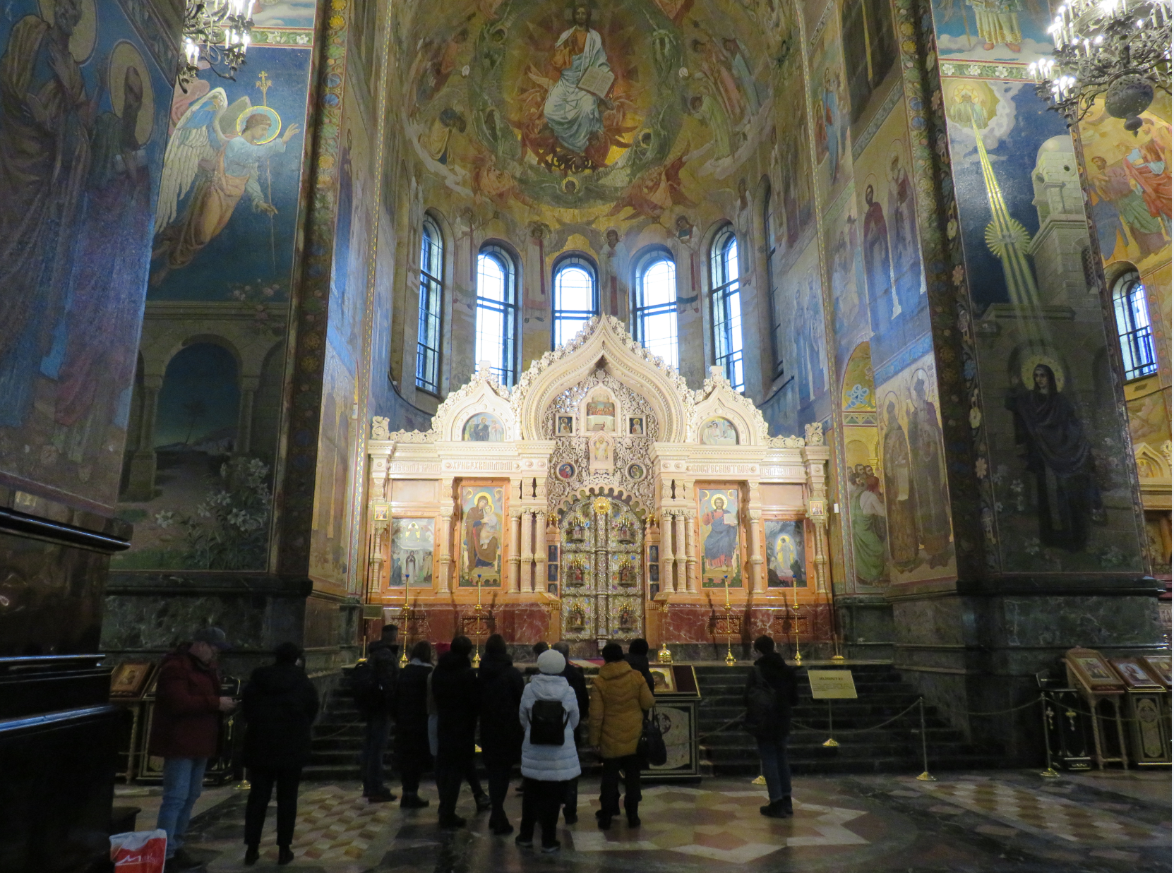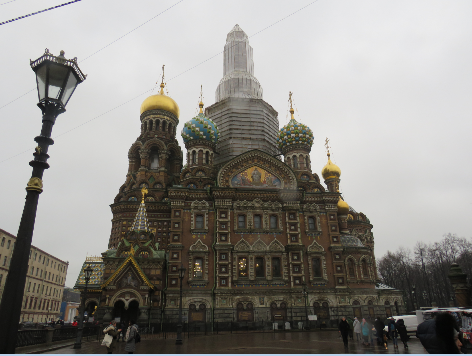 Давно я уже ничего не публиковал интересненького. Но вот я добрался до русского музея это было в четверг. Выставка как раз в субботу заканчивалась, но в последний день идти как-то не хотелось. У входа стояла очередь человек в пятьсот и охранник отсчитывал по головам и пропускал человек по пять. Времени было 14-30, так как корпус Бенуа, как и весь русский музей по четвергам работает с 14-00. Нам стало совершенно очевидно, что сегодня уже точно не наш день. Не хотелось мириться с такой неудачей и мы решили изменить план. Впереди дальше вдоль канала Грибоедова возвышалась громада храма Спас-на-крови, мы туда давно собирались, но как-то не складывалось. Ну там-то и пройти вдоль канала пару сотен метров. Это музей и одновременно действующий храм. Этот храм который официально посещала царская семья. А еще он построен на месте покушения на царя Александра второго. Народоволец Игнатий Гриневицкий бросил бомбу в царскую карету. Царь получил ранения от которых вскоре скончался. Внутри храма находится Сень над местом смертельного ранения, где сохранена часть мостовой и ограждение набережной канала.