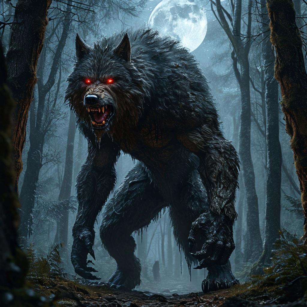 Это он. Оборотень. Ростом превосходящий человека на голову. Даже слегка согнувшись, он представляет собой мощного противника. Черная лоснящаяся шерсть, вытянутая морда с набором впечатляющих клыков и глаза, как будто человеческие, смотрящие прямо тебе в душу, но полные звериной ярости и ясно читающегося желания разорвать на куски.