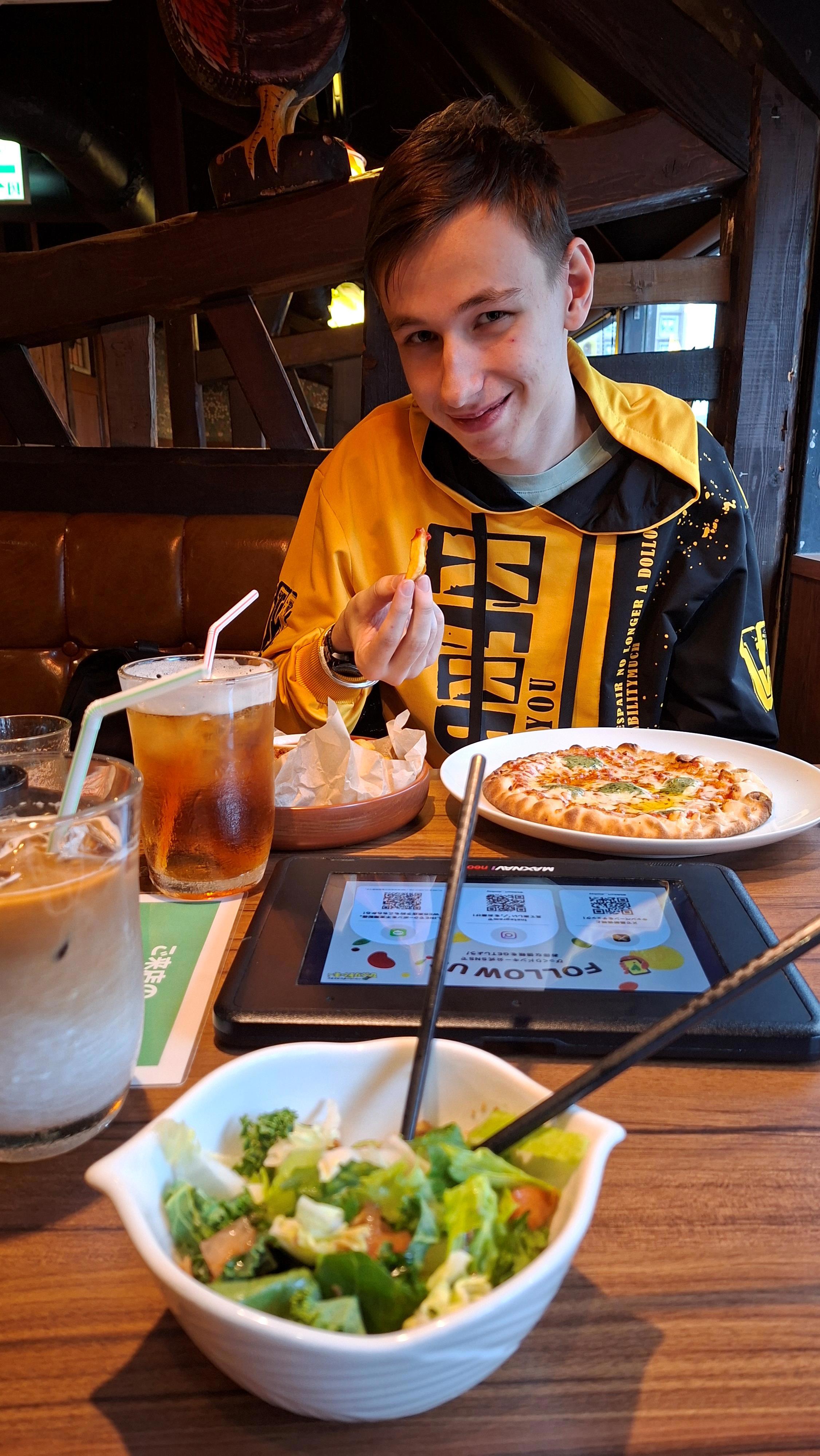 К слову, так как тут полно ресторанов, можно выбрать еду на любой вкус. Мы зашли в итальянский (братюнь пиццы захотел). Меню нам вручили на планшете. Вторично официанта подзывать не пришлось, так как весь заказ приняли электронно.