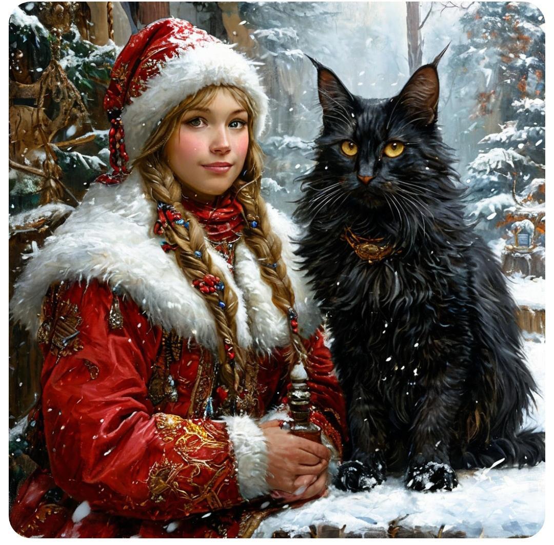 А в это самое время, Норвежский лесной, развалившись в летящих санях Деда Мороза и нежась под рукой Снегурочки, с улыбкой думал о том, что еще одному Мейн-куну, улыбнулось счастье. А на Москву, падали предновогодние снежинки