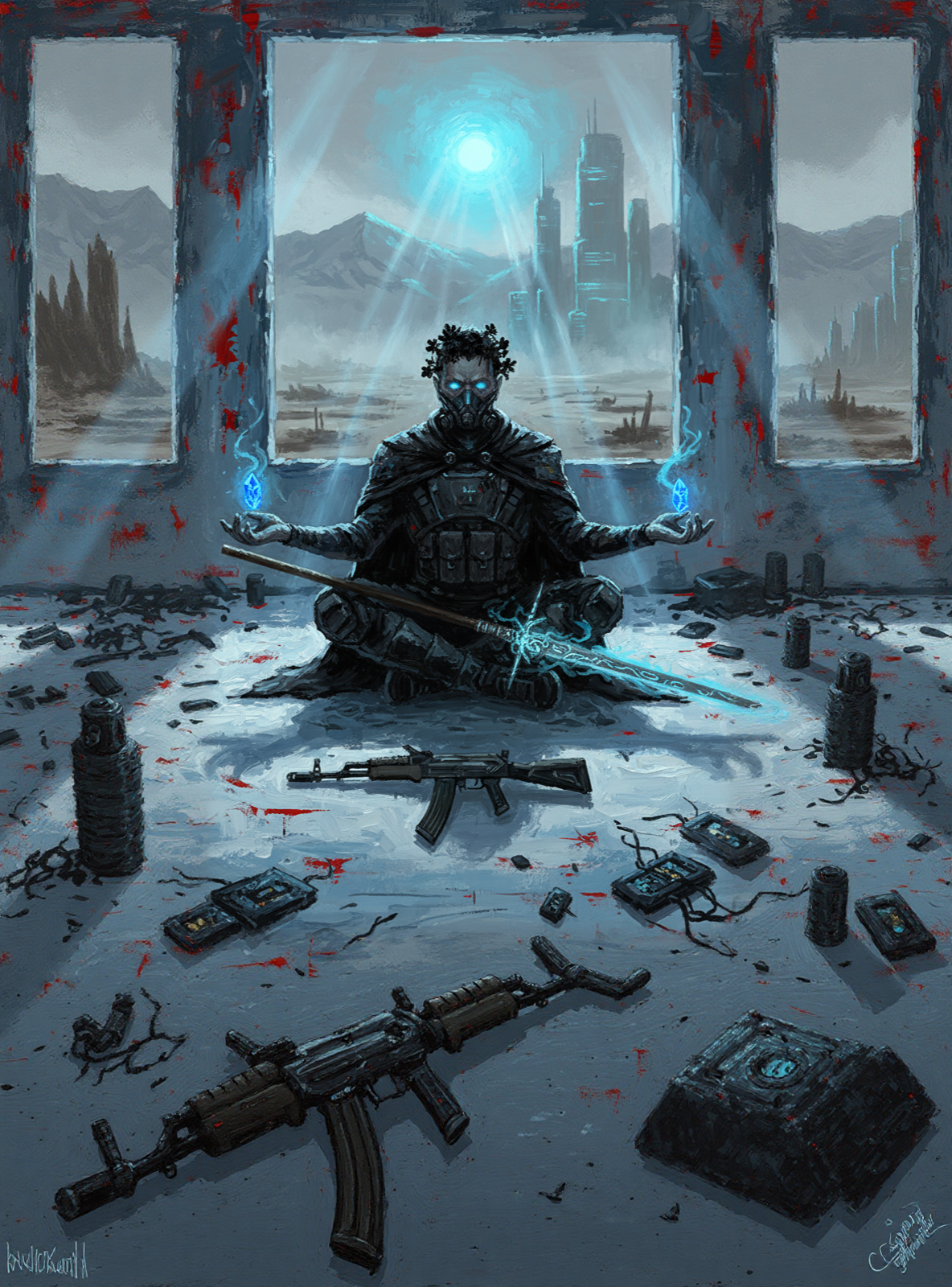 Отдельное спасибо хотелось бы выразить Артемису Мантикору, который нагенерил мне стильных референсов, откуда уже я начал сам доделывать облогу в фотошопе. Если что, оригинал выглядел так