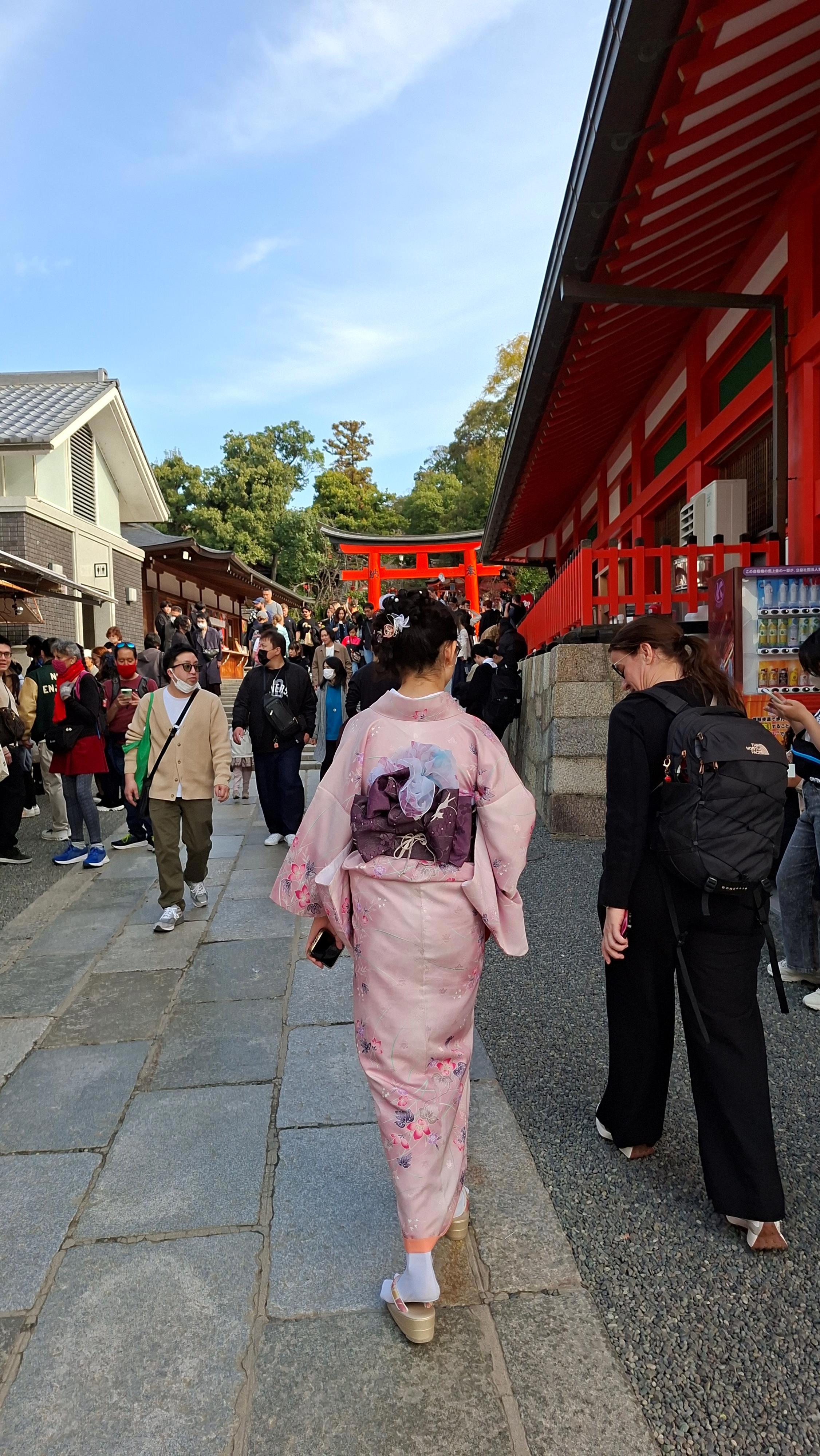 Так как туристов очень много, то в Японии придумали интересную услугу - прокат традиционных нарядов на какое-то время. И, нет, мы не брали. Просто наблюдали, как вокруг ходят переодетые в традиционные наряды девушки и юноши. Зато хоть посмотреть смогли!