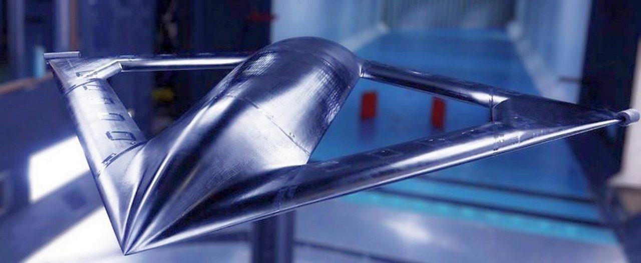 Причём «Аврора» сразу заявила, что они уже проводят опытные работы с моделями в аэродинамической трубе и даже показали макет опытной машины с «Активной системой управления воздушным потоком» (AFC). Некоторые журналюги туманно сообщали, что вроде бы «BAE Systems» тоже в деле, однако не совсем понятно, насколько и в каком виде. Ещё в Сети гуляет вот такая фотка модельки в аэродинамической трубе от «Aurora Flight Sciences»: