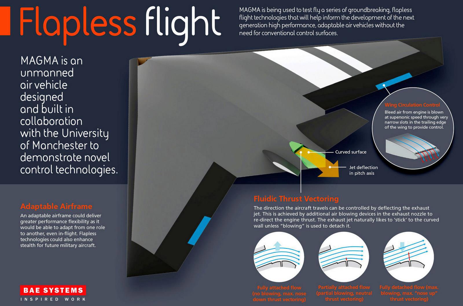 На основе полученных данных англичане отметили, что эффективность новой системы немного уступает традиционным элементам управления полётом, однако приняли решение продолжить работу. Они ещё немного почесали репу и в 2017 году построили уже усовершенствованный опытный аппарат, который получил не менее грозное название «Magma»: