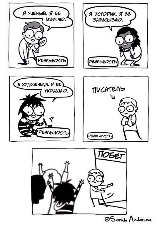 Автор: Анна КокареваЯ не желаю писать реальность. Хотя в ней далеко и засматривать не надо, бери первое попавшееся да пиши. Какое-то время назад думала, что будет, если орка с человеческой натуры написать для оживления персонажа? Присматривалась. И нет, описание живого человека очень страшным получается: шапка-гондон, натянутая на сизый лобик, глаза живого мертвеца, тело с характерной алкогольной худобой и суставами, испорченными алкоголем же. Эти бездны Достоевский писал. А для розового романа даже в качестве отрицательного персонажа слишком страшно.