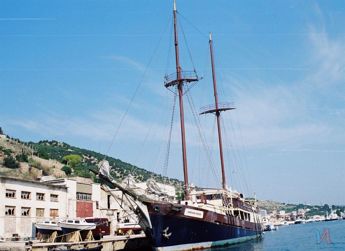 Старпом сводил нас на экскурсию на стоявшую прямо перед нами трёхмачтовую шхуну, на которой раньше работал. А в тот момент на ней снимали "Бегущую по волнам". "Морская звезда" - название для фильма.