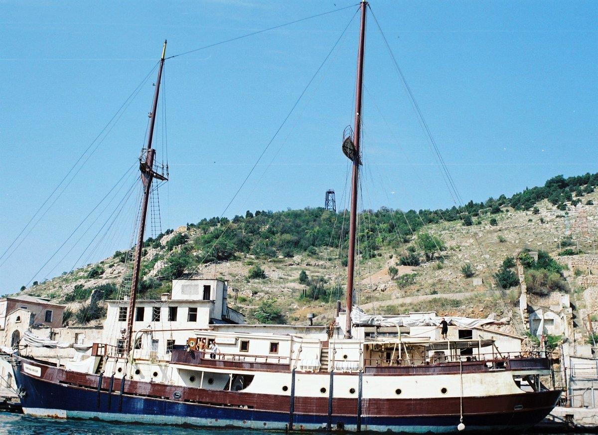 Утром будит нас капитанский ор типа "Свистать всех наверх!" Удивительно, т.к. он никогда не повышал голос. Я на палубу - а он с пристани машет одной рукой "Давай на берег", а второй показывает в бухту. Поворачиваюсь, а там - эта самая шхуна (трёхмачтовый) прёт прямо на нас - с другой стороны, чем стояла вечером. Бухта Балаклавы узкая и длинная, как он там вообще развернулся, я хз, но старпом поясняет, что у них видать в машинном задний ход заело - т.е. рулевой отработал поворот, а двигатель - нет, и получилось, что судно поплыло не туда, на берег. (Судно вообще реагирует на штурвал не так, как машина на руль)