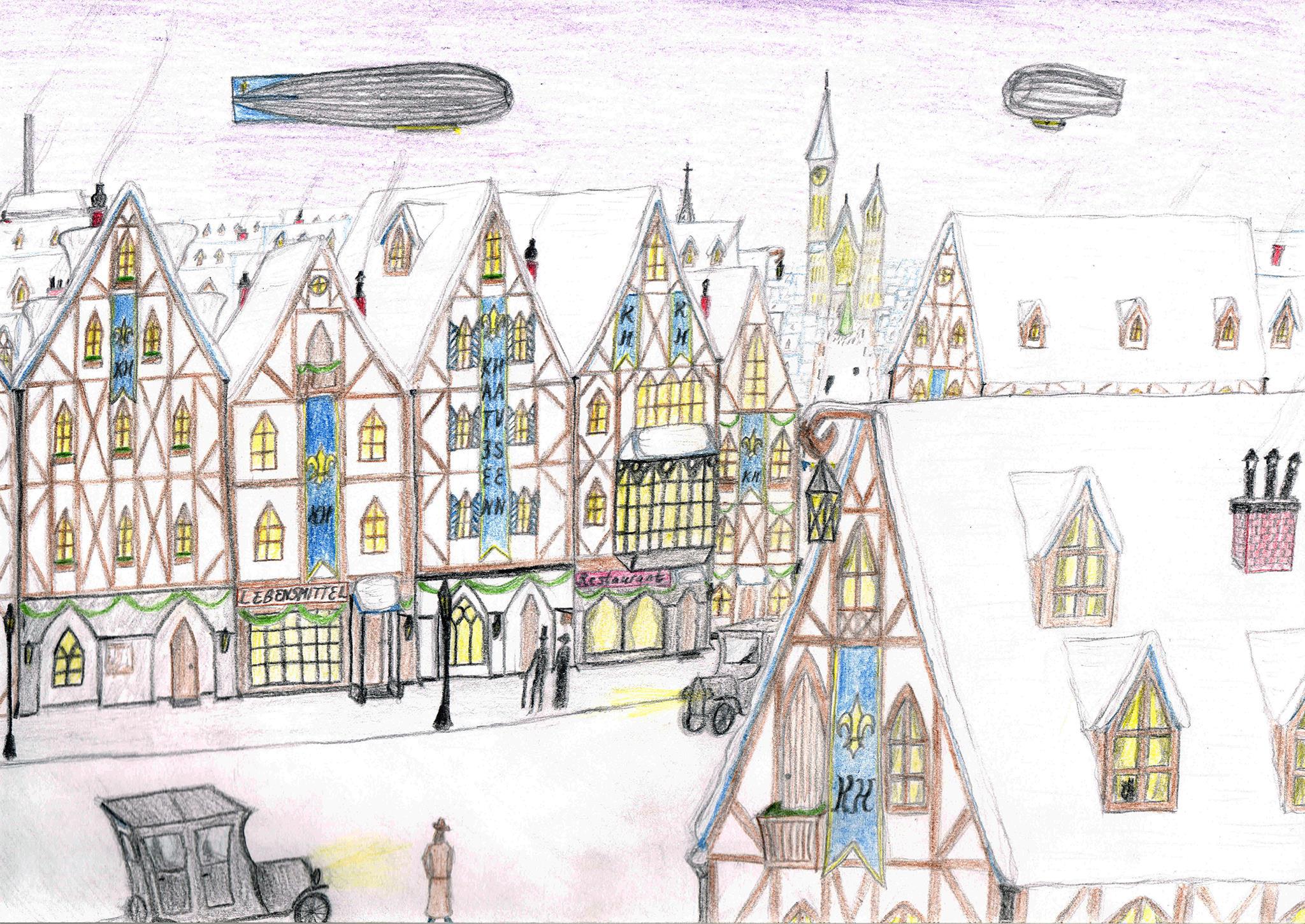 Зимний город Катценхаузен. Иллюстрация автора.Обратите внимание на французские лилии.