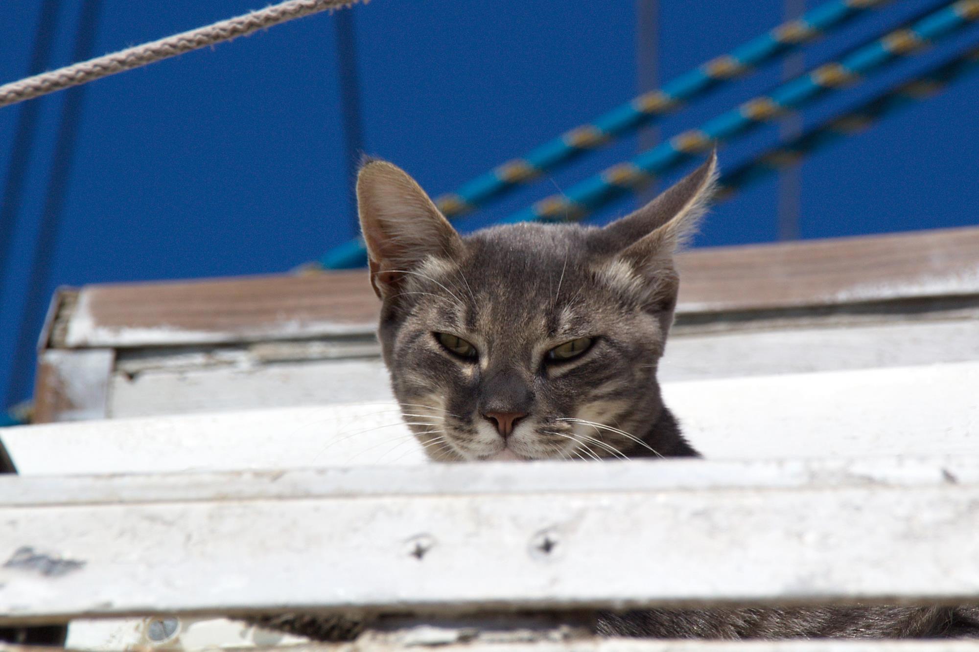 Это очень важная для меня кошечка. Она стала прототипом кошки Марты, в просторечии Мурки Кыс-Кыс в романе "Женщина с котом". Деловитая корабельная кошка, обитающая вместе с котятами на яхте. Я их изрядно поснимала, пока яхта стояла на стапелях рядом с морвокзалом, даже черновик романа назывался "Кошка с яхты "Пенелопа" (нечто крапивинское))), но так как роман все-таки о великолепном коте Темучине, то это название осталось у серии фотографий.