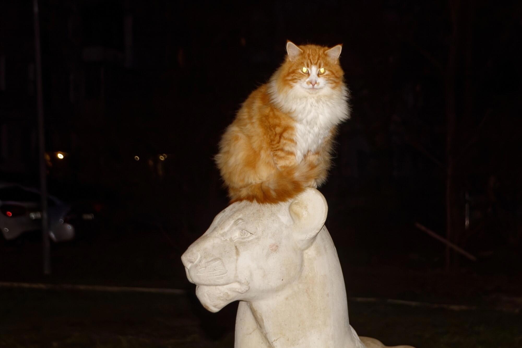 У входа в художественные мастерские скульпторы завели себе роскошную каменную львичку, она возлежит на бетонном бордюре, всех радуя. Особенно котиков...