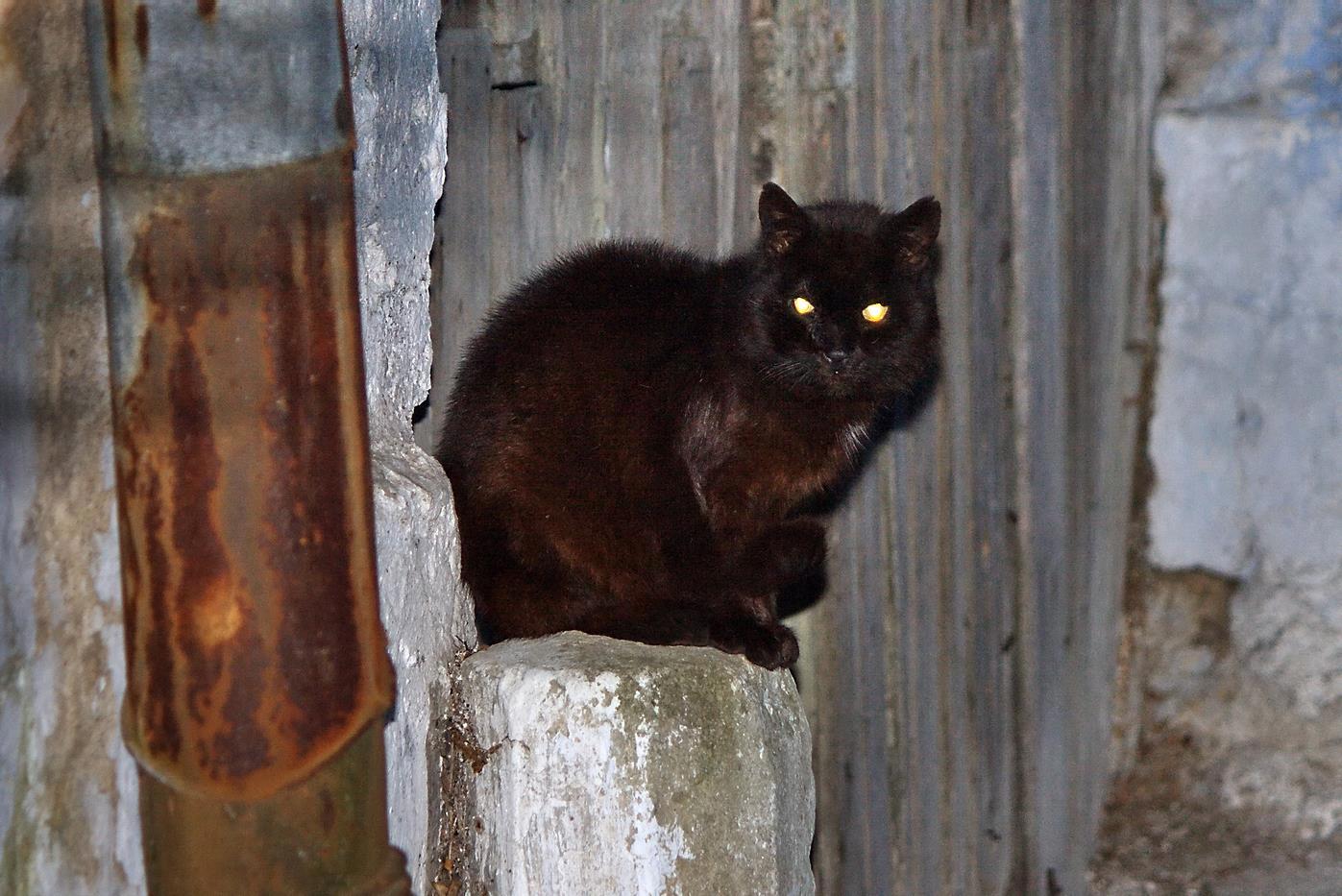Этот черный тоже сидит не просто так. А на старинной колесоотбойной тумбе. У нас их еще много на улицах старой застройки, где у домов широкие ворота. Тумбы не такие разнообразные и интересные, как в старинных городах, но все же прекрасно, что они есть.