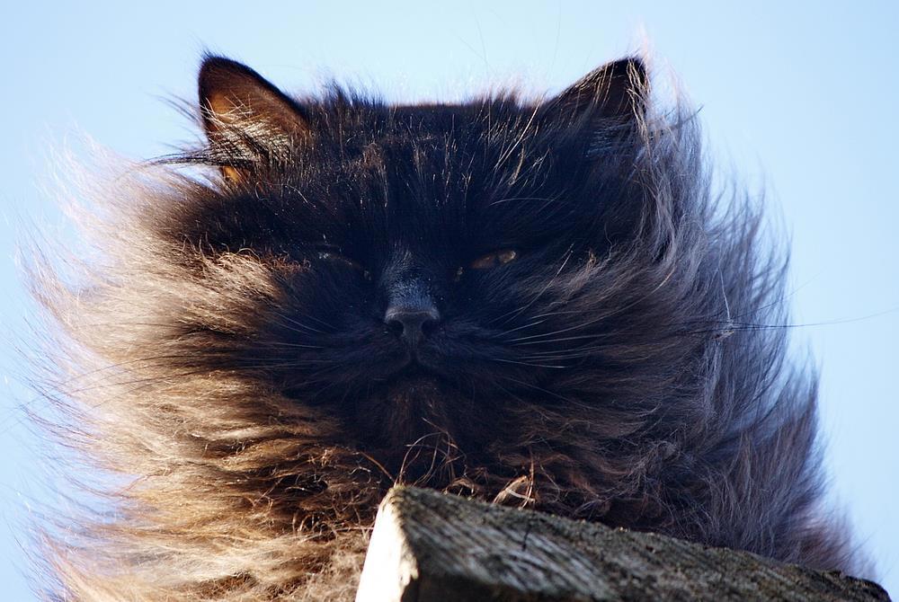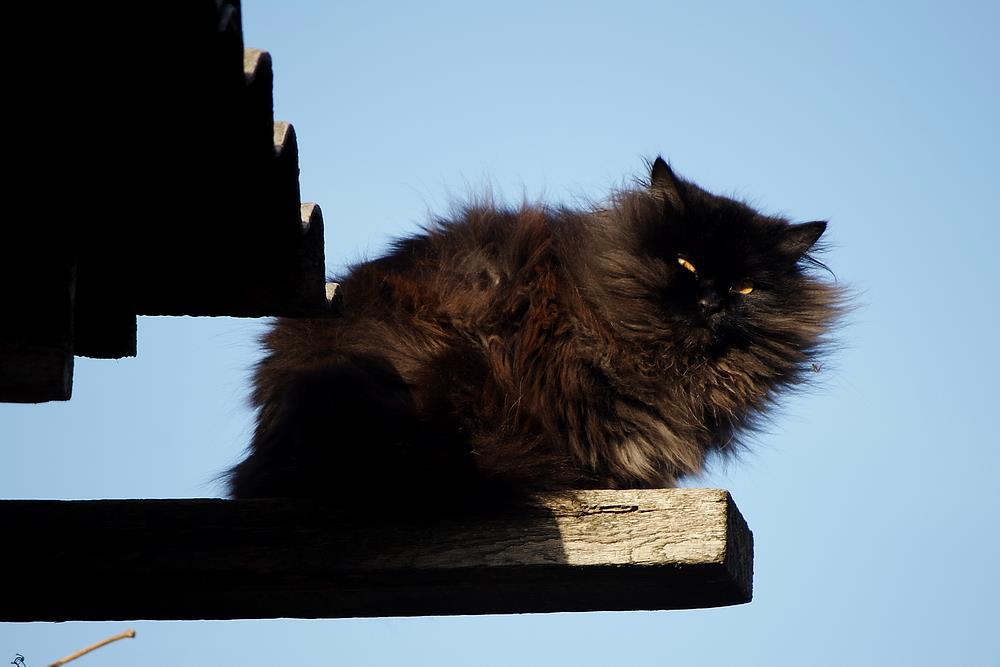 Не совсем "вольный" кот, явился со двора, обозреть окрестности. Я его заметила случайно, когда был уже над головой, разглядывал свысока. В частном секторе эта такая отдельная тема - коты-горгульи, украшают собой ворота и высокие каменные тумбы заборов.