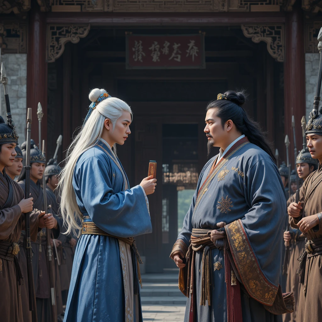 Но есть сцена с неудачной попыткой Ичэня нагрянуть с обыском в поместье министра доходов; её и отображу. Привратник - справа.