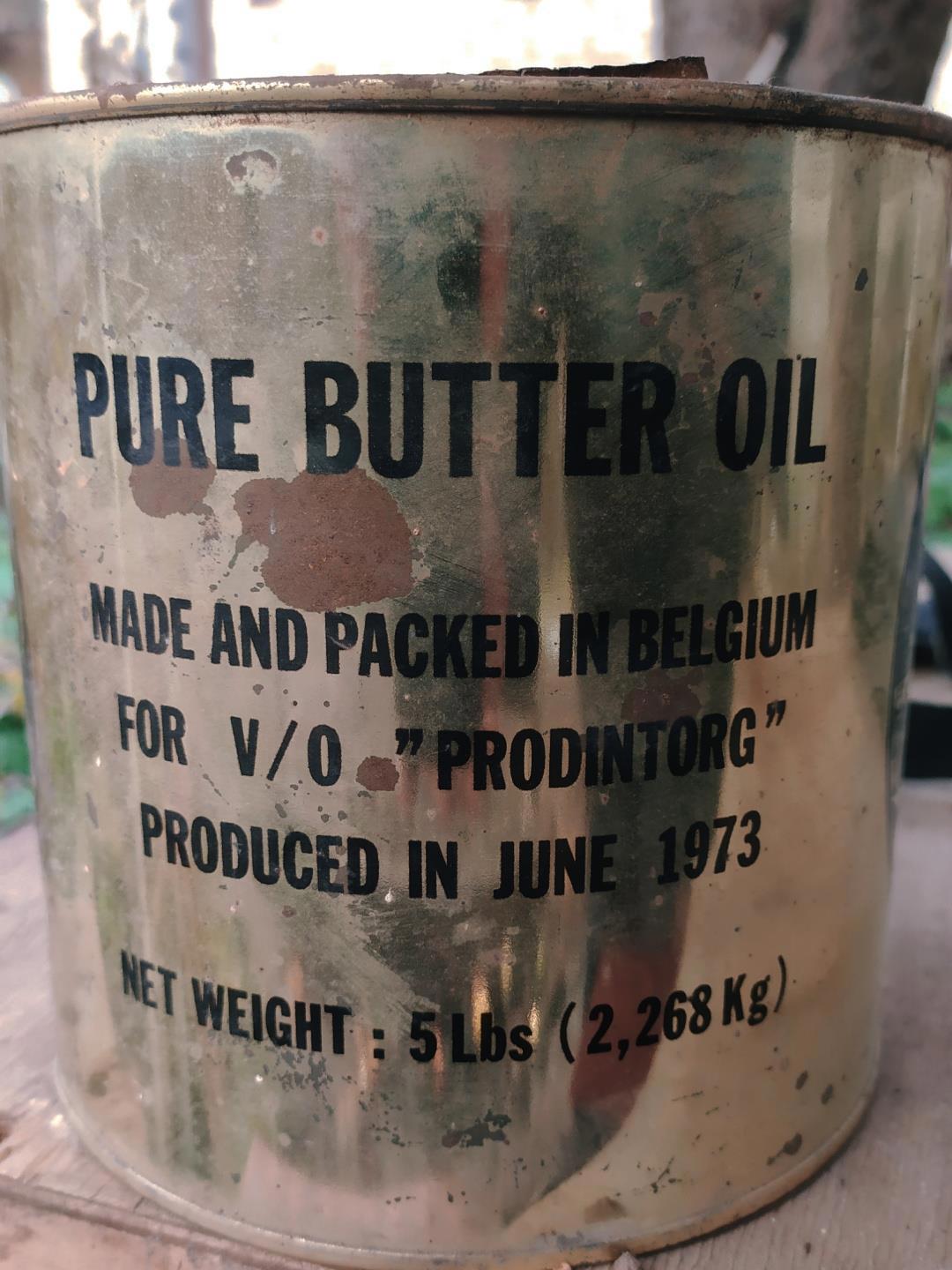 Было это масло в 1943 году запечатано в 10-литровые жестянки и отправлено из США воюющему СССР. И прождало своих потребителей почти полвека.