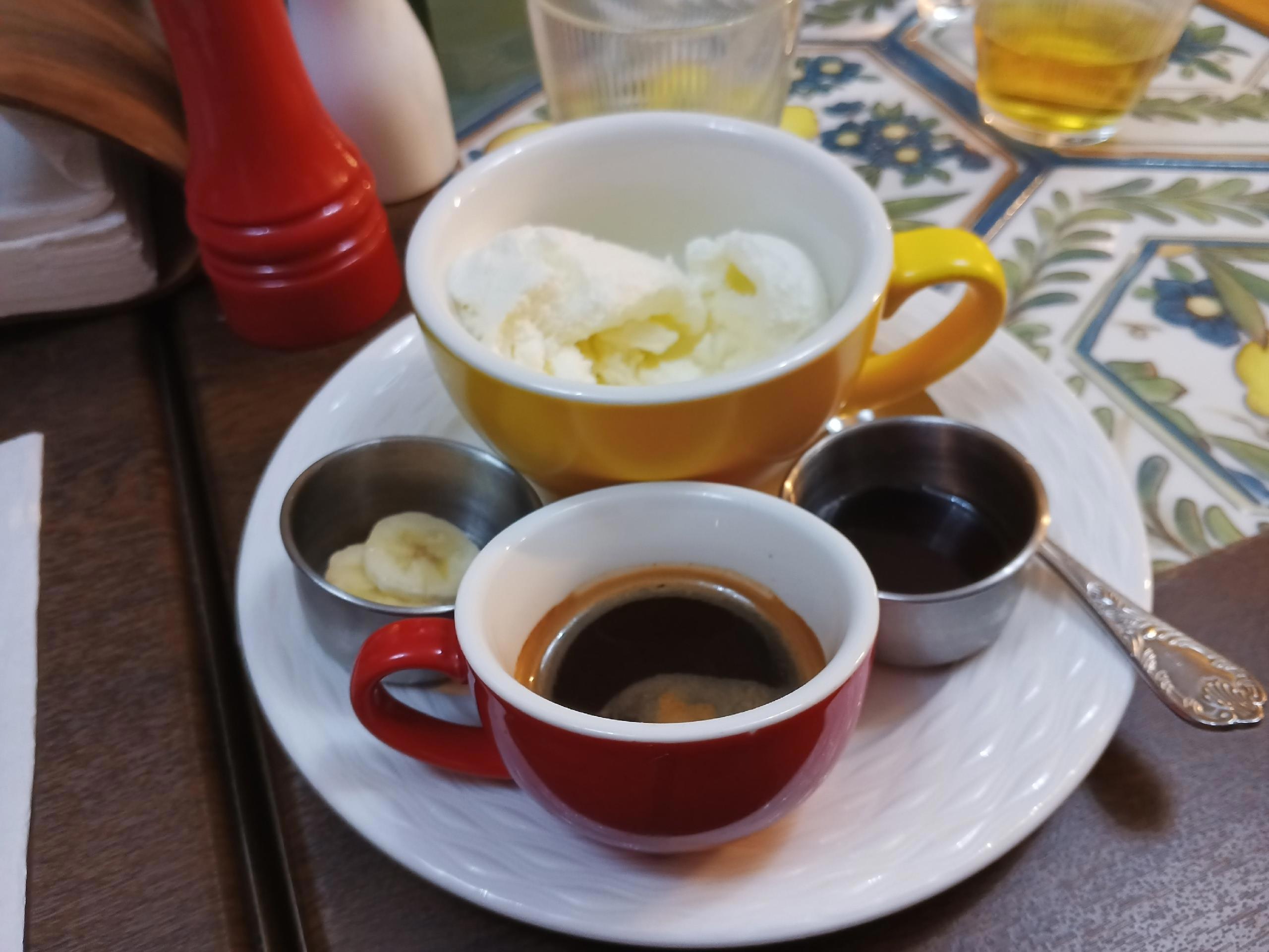 Мороженое, банан, топпинг, кофе. Фото Галины Малышевой.