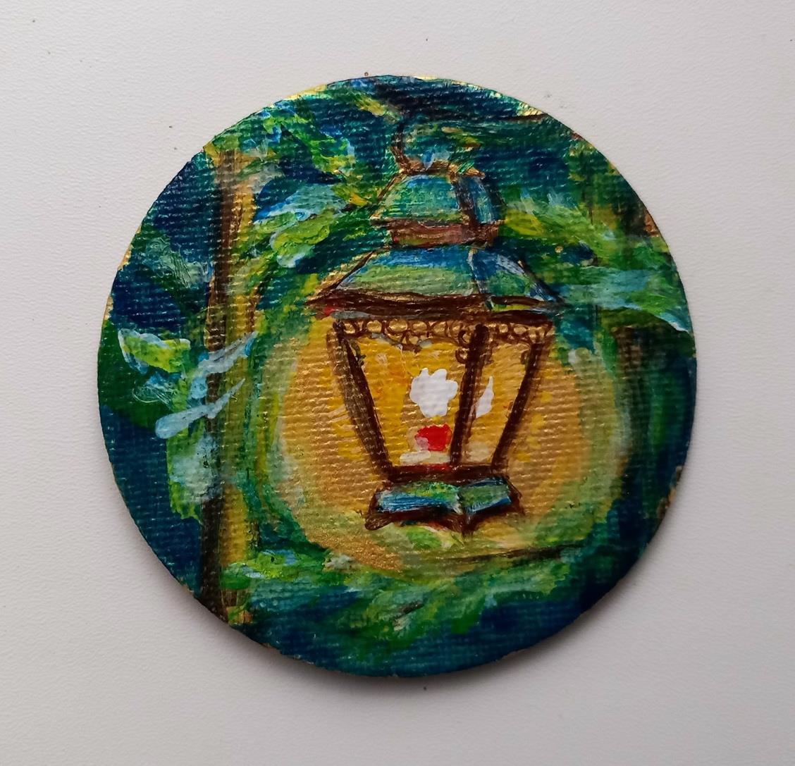 Рисунок чёрным линером, раскрашиваю акриловыми красками, в том числе золотой.