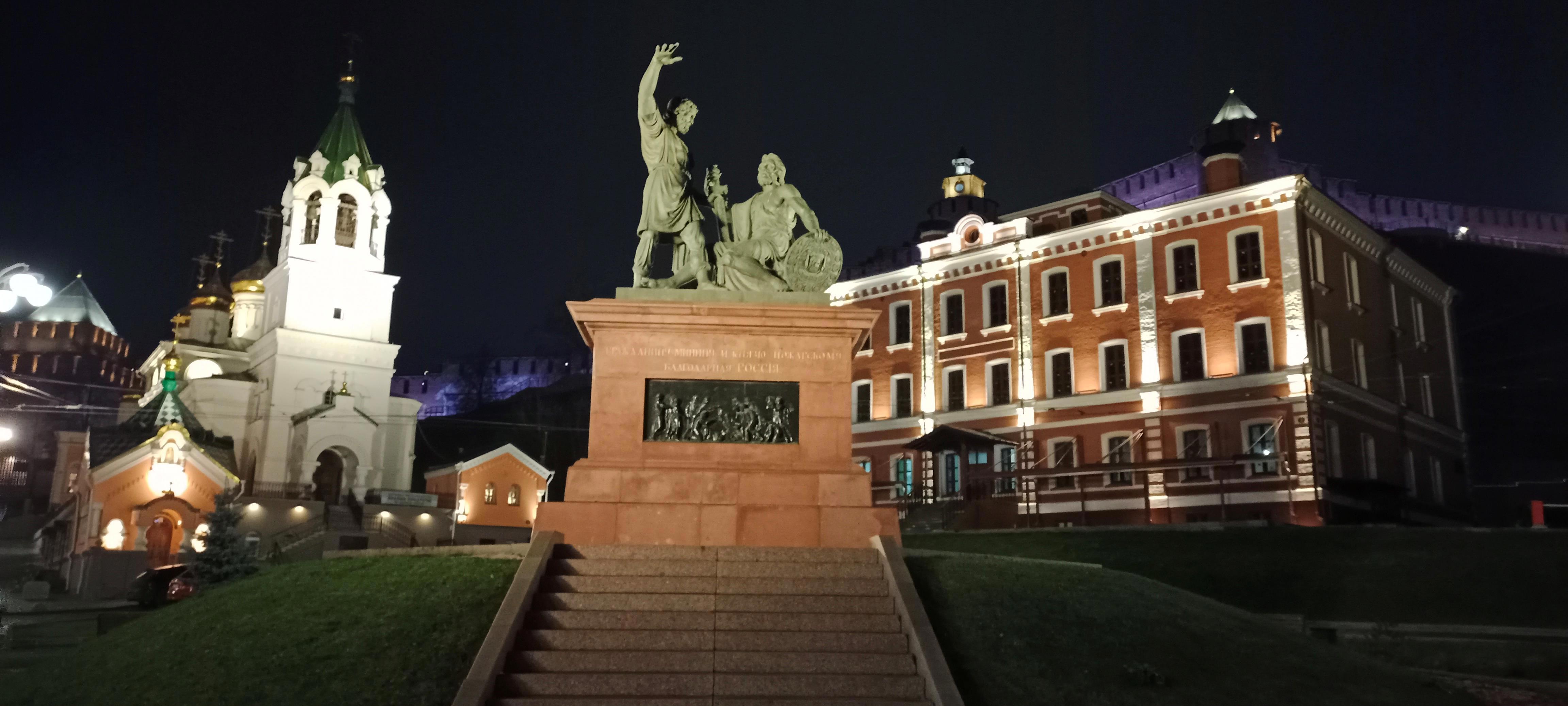 Фуникулёр привозит к памятнику Минину и Пожарскому. Да, как в Москве (тот памятник, который стоит сейчас в Москве, сначала хотели установить в Нижнем, но власти посчитали, что для провинции он слишком хорош — так что в Нижнем памятник появился только в 2005 году, копия московского).