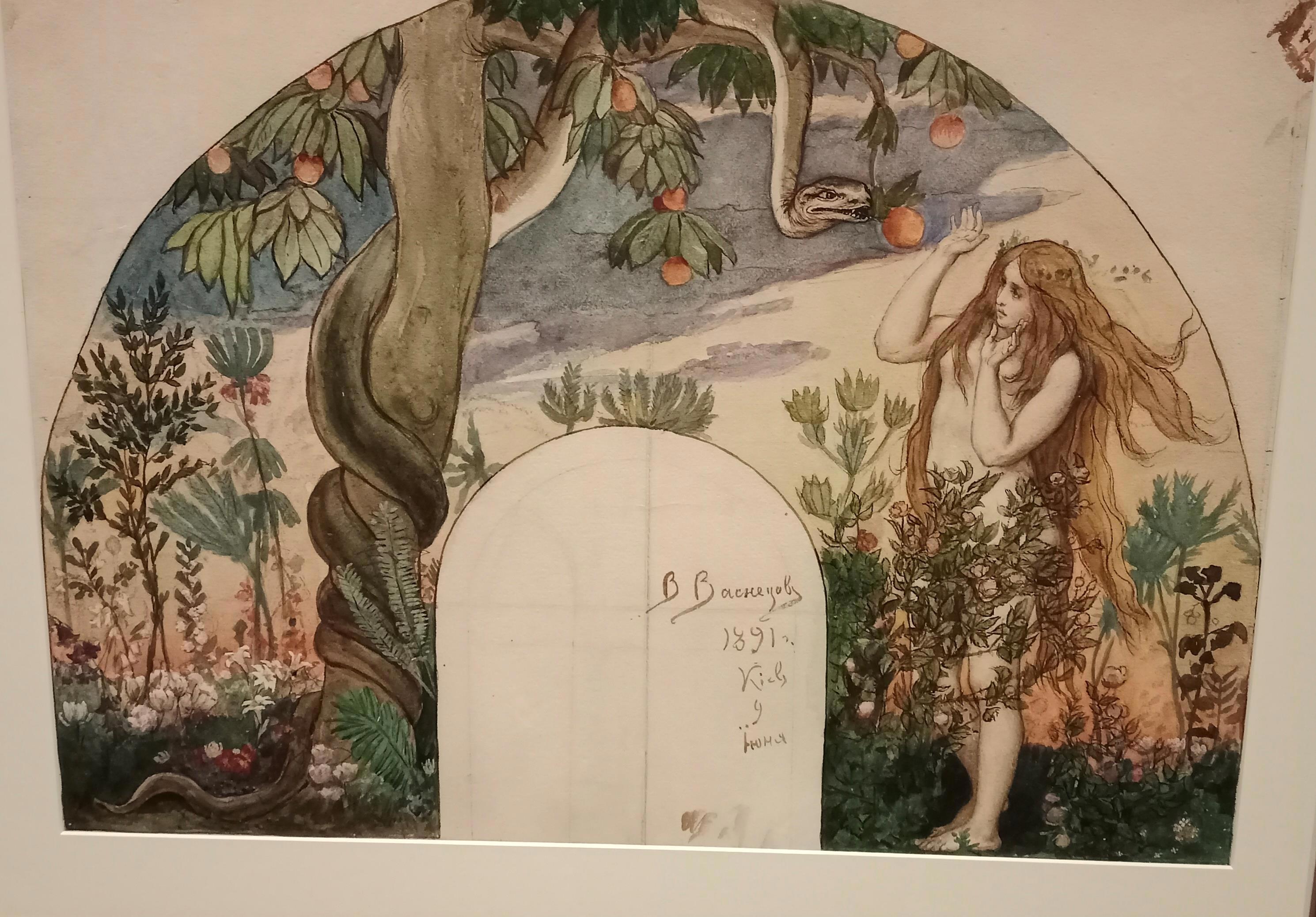 Ева и змий. В связи с этой картиной и картиной выше наивный дилетантский вопрос: а не является ли знаменитый Альфонс Муха и прочие зарубежные арт-нувошники лишь подражателями стиля Васнецова? Он их всех старше по возрасту и работы его раньше появились.