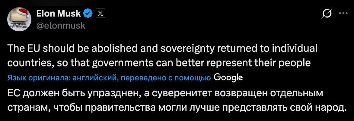 Обиженный Маск призвал ликвидировать ЕС после того, как Еврокомиссия оштрафовала его соцсеть Х на €120 млн за нарушение закона о цифровых услугах!