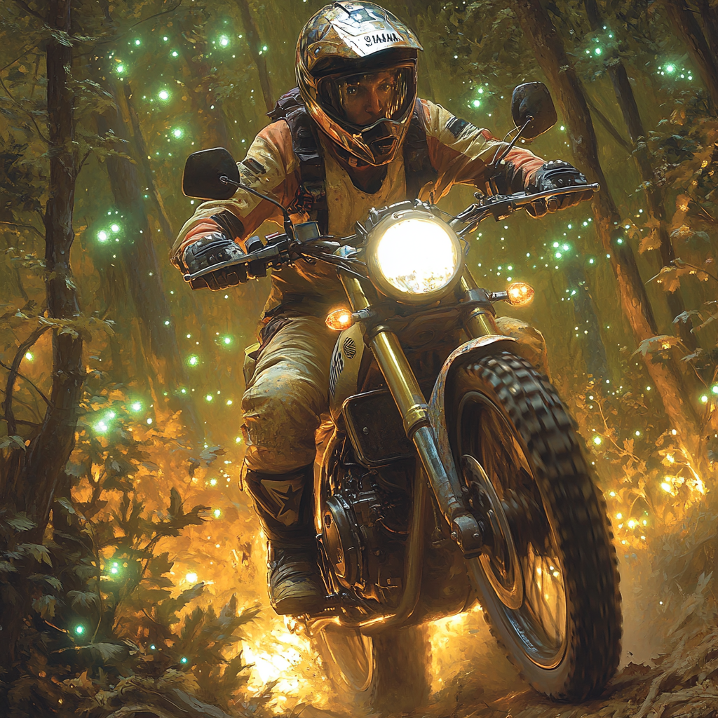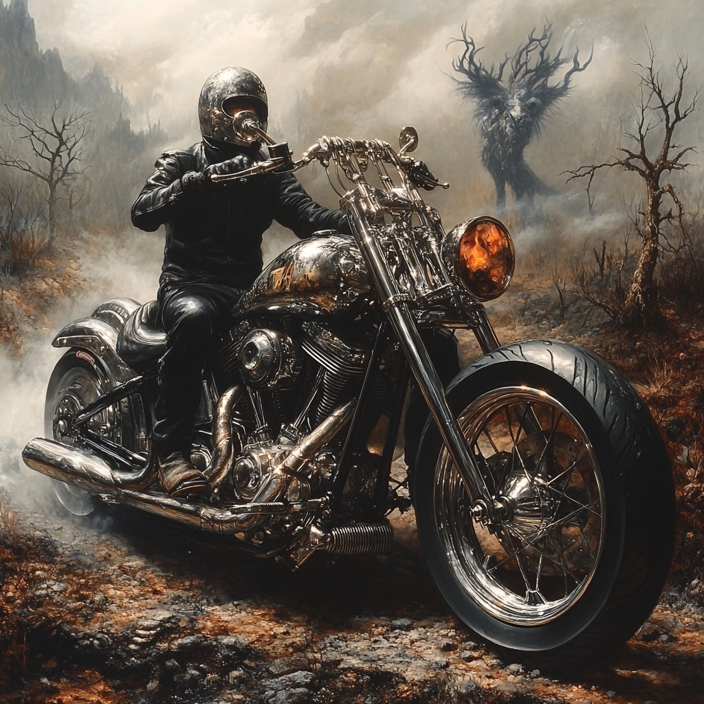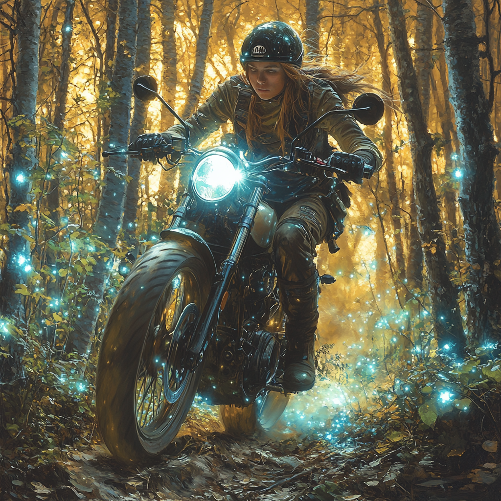 Короче, сюжет у меня постоянно меняется, то в одну, то в другую сторону и я сам не знаю, куда он вывернет, но приключений у ГГ будет много, даже чересчур. А вот, что мне нейросеть по обложкам делает, причём пишешь мужчина мотоциклист, а она тебе иногда женское лицо подсовывает.