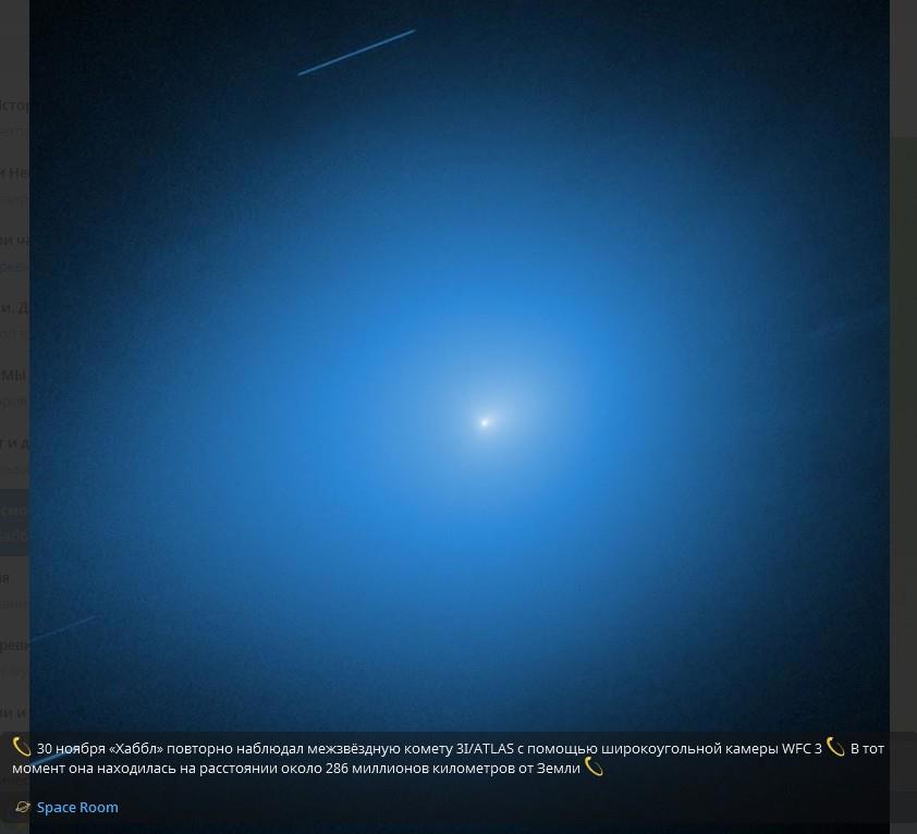 НАСА всё же повернуло телескоп Hubble и сделало новые снимки 3I/ATLAS - https://t.me/lpixras/1885 , https://xras.ru/project_diary.html?post_id=3189&ysclid=mit0096myg979138544, https://science.nasa.gov/blogs/3iatlas/2025/12/04/nasas-hubble-space-telescope-revisits-interstellar-comet/