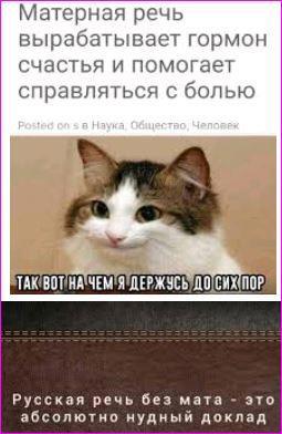 В любом месте следует вести себя одинаково культурно и добродетельно! В любом! Вы строите из себя Ангела с нимбом в автобусе или метро, а потом приходите домой и кошмарите жену и детей, а потом приходите на работу в кремль и посылаете на верную ссммееррттьь сотни тысяч людей, только потому что вам нравится воровать бюджетные деньги, а в соседнем государстве чиновников не награждают за то что они воруют бюджетные деньги и делятся наворованным с более высокопоставленными чиновниками, а выявляют воров и увольняют их. И поэтому вы хотите чтобы соседнее государство было или уничтожено или там прекратили бы выявлять и увольнять воров, как в вашей стране... Где логика?! ПОЧЕМУ в в автобусе или метро нужно вести себя культурно, а дома и на работе - подло! В любом месте следует вести себя одинаково культурно и добродетельно! В ЛЮБОМ! И прежде всего следует начинать с гласности! Только не с тем что меченый мишка-вор выдавал за "гласность", а с настоящей гласности! С правдивой! А Правда в том что слова (мат и не мат) не значат ничего, пока безнаказанно творятся подлые дела! Пока безнаказанно творятся подлые дела - материться не только можно, но и нужно! А вот когда все люди начнут вести себя культурно - тогда можно будет и о мате задуматься...