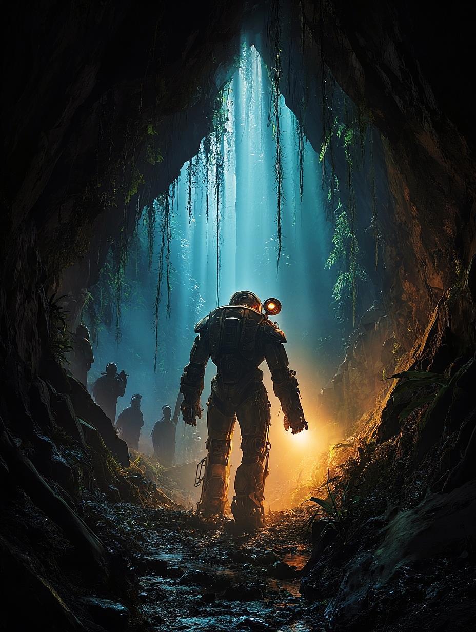 Через два десятка метров впереди вспыхнул свет, и Адам выключил фонарь. Тени скользнули назад, и, как только мех вышел из коридора, Джек смог разглядеть что-то кроме металлической спины. Узкий путь выходил в высокий колодцеобразный грот. С нескольких балконов под сводом длинными молочными клыками свисали сталактиты. Вода сочилась по ним и падала на встречные зубья. Камни блестели от влаги, но почти вся вода уходила в едва заметные трещины в полу. Одинокая лампа освещала пространство, бросая на чёрные стены десятки теней.