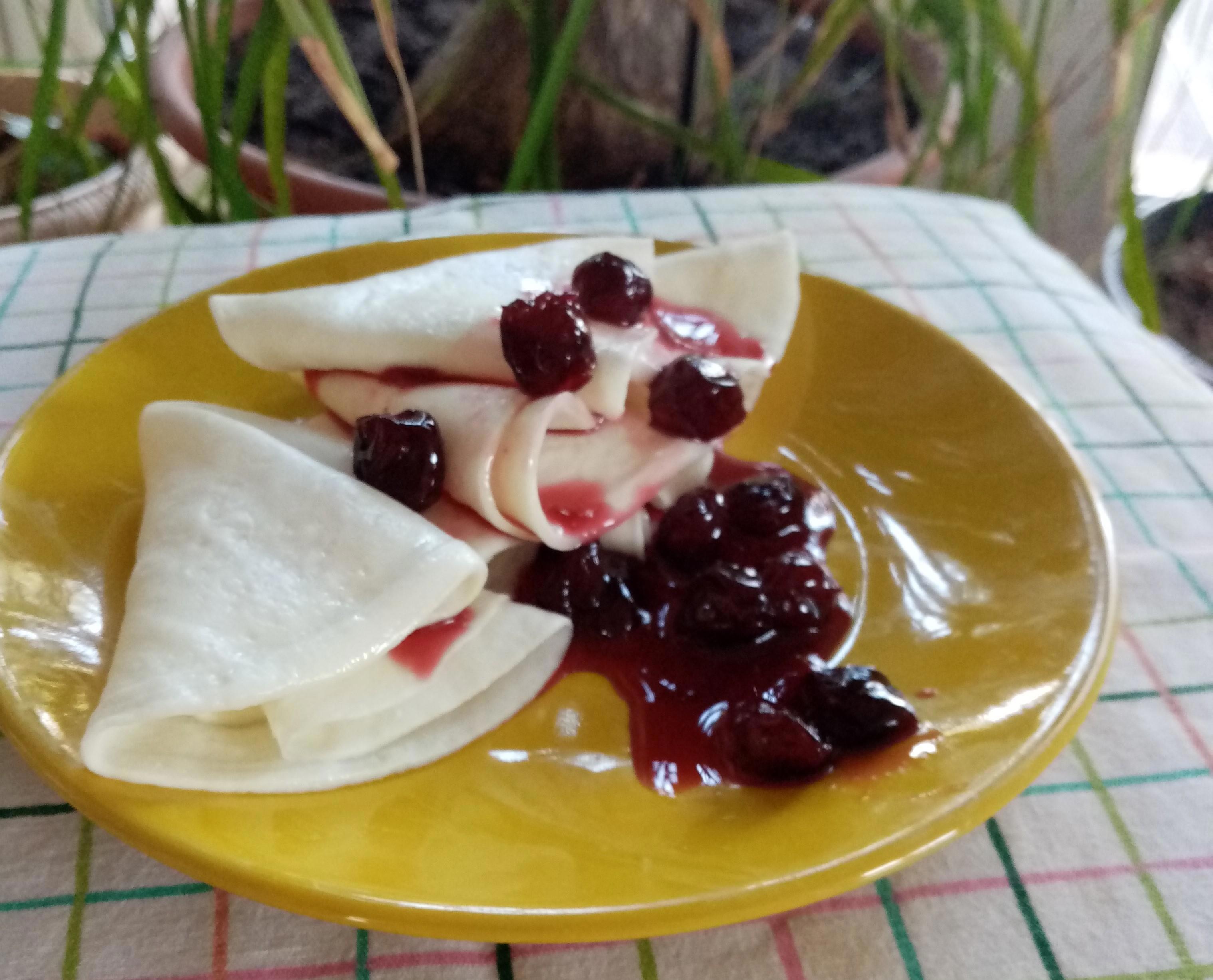 Сулугуни с вишневым вареньем! Запивать можно чаем, вином, минералкой или вообще не запивать. Пишу, а руки так и тянутся к тарелочке. Так что, приятных вам мыслей о вкусном… пошла я нарушать композицию.