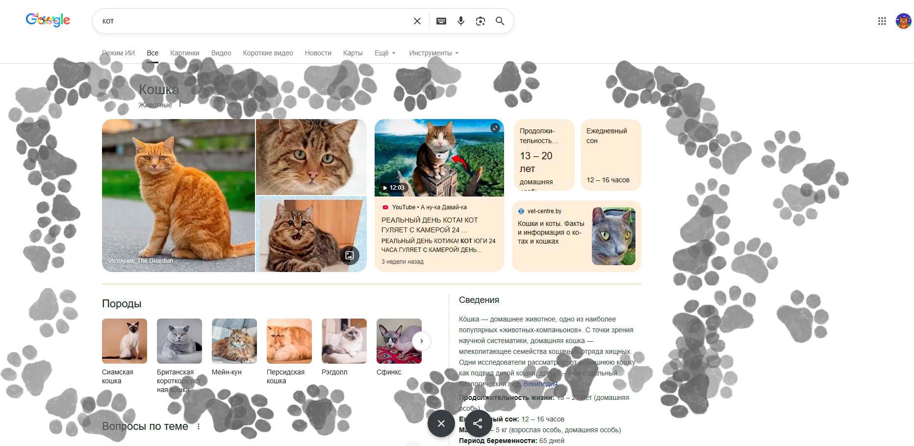 А если часто нажимать на мышку, то появится сразу несколько разномастных кошачьих лапок.