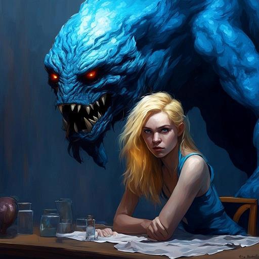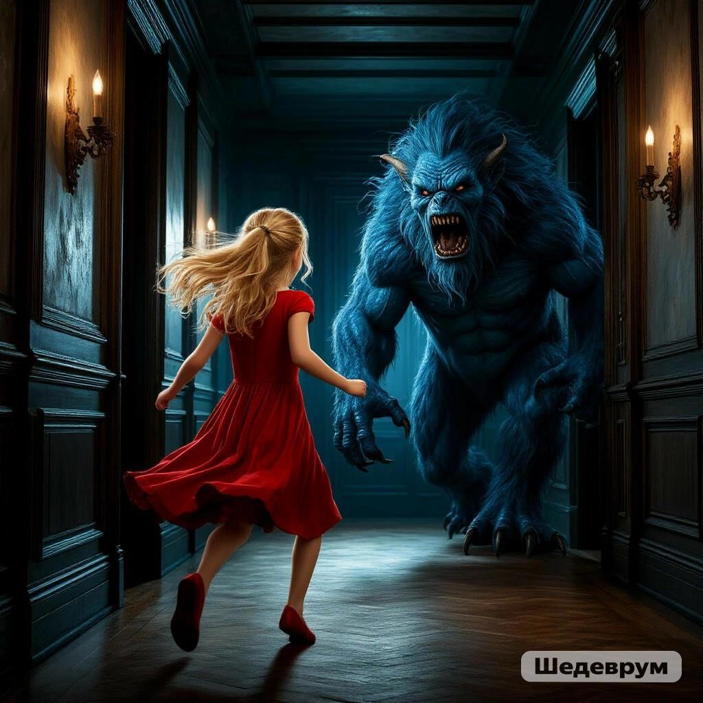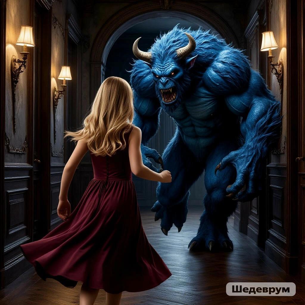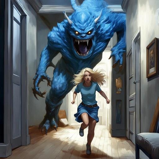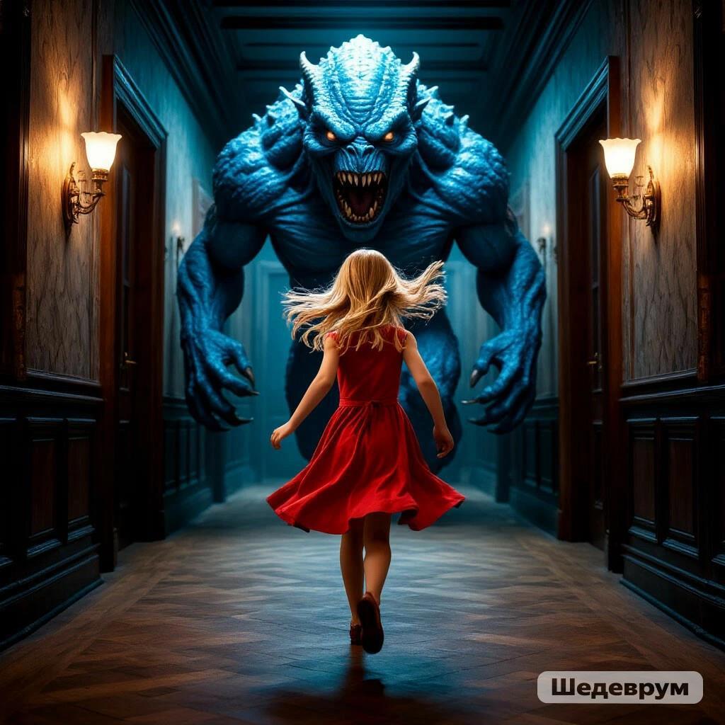 НО (!!!) вот убегать ОТ блондинки он категорически не желал, а со свирепым видом гнался именно ЗА ней, т.е. нейросеть не может даже допустить такой мысли, что именно девушка гонится за монстром, а не он за ней...